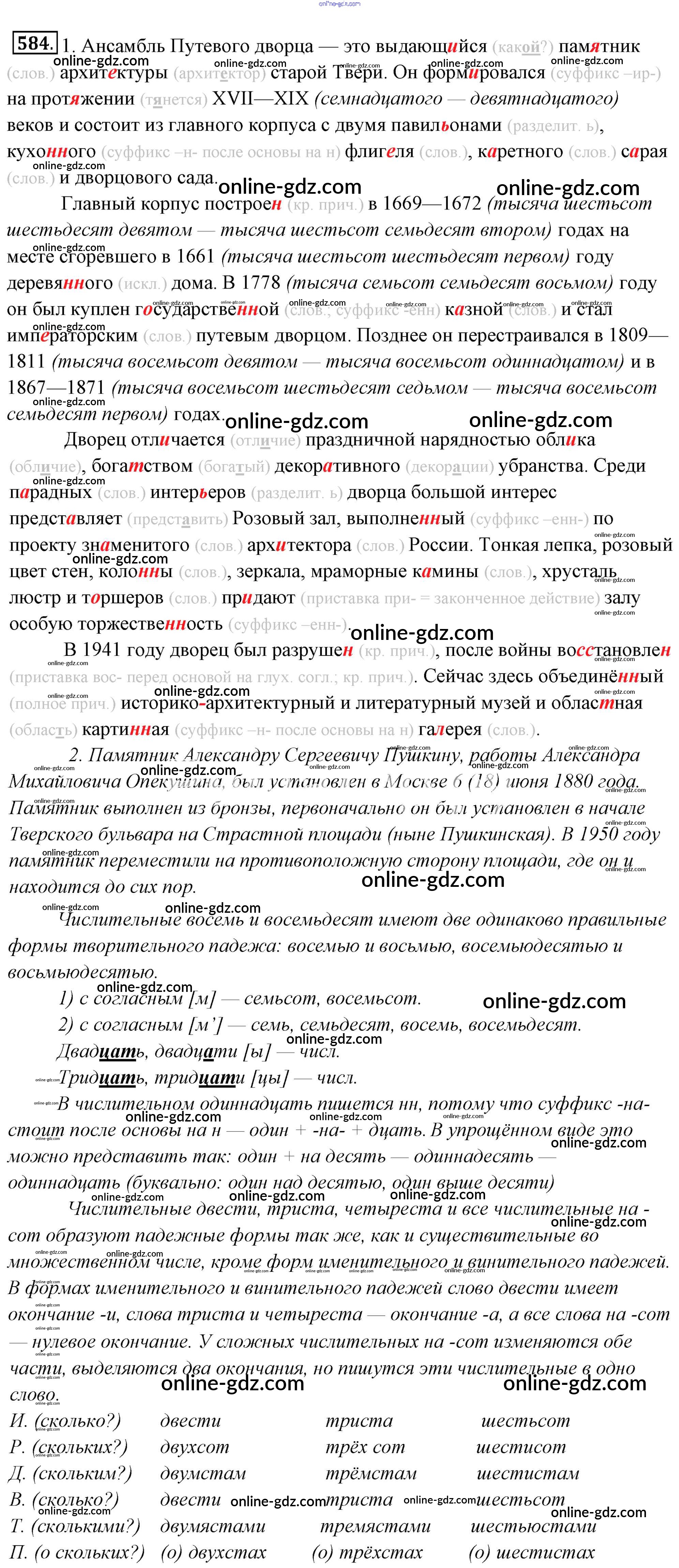 Готовые домашние задания по Русскому языку за 6 класс Учебник Львова, Львов 2013 - Упражнения 584