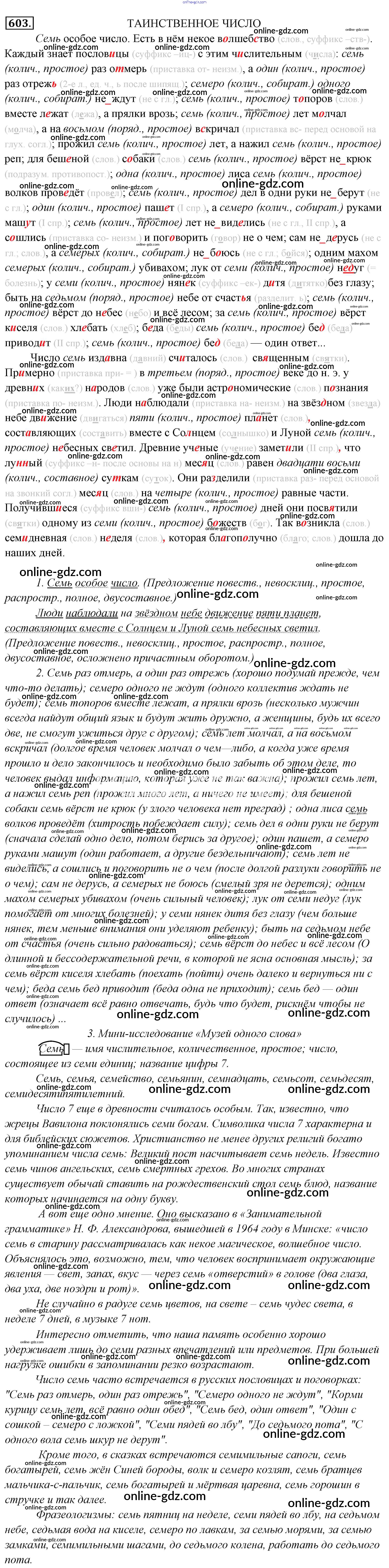 Готовые домашние задания по Русскому языку за 6 класс Учебник Львова, Львов 2013 - Упражнения 603