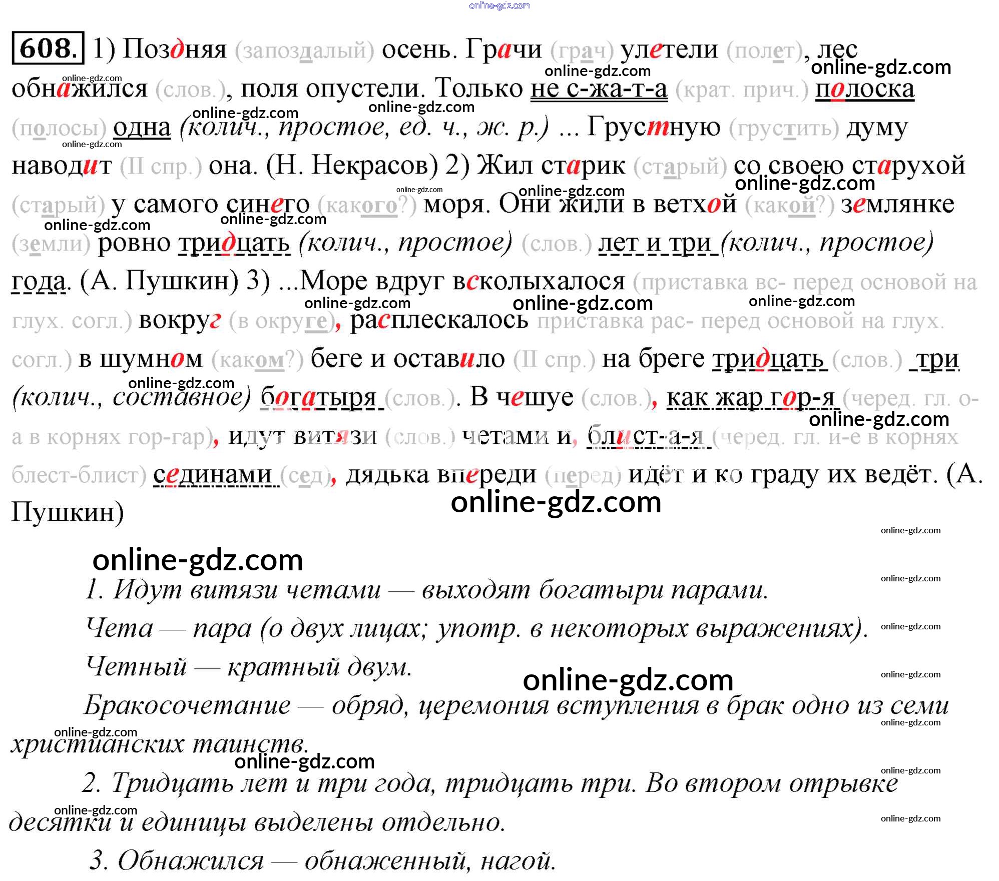 Готовые домашние задания по Русскому языку за 6 класс Учебник Львова, Львов 2013 - Упражнения 608