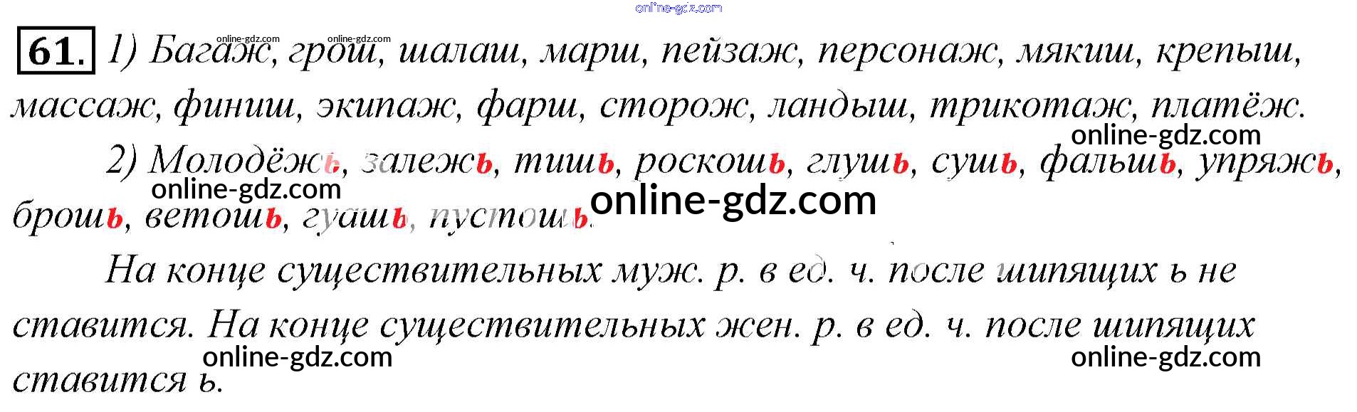 Готовые домашние задания по Русскому языку за 6 класс Учебник Львова, Львов 2013 - Упражнения 61