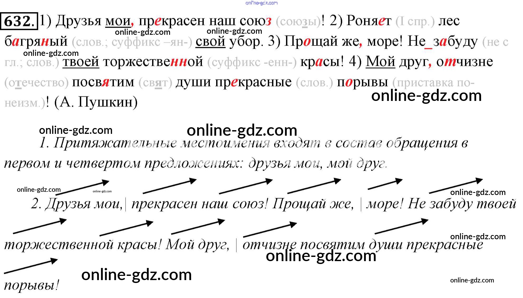Готовые домашние задания по Русскому языку за 6 класс Учебник Львова, Львов 2013 - Упражнения 632