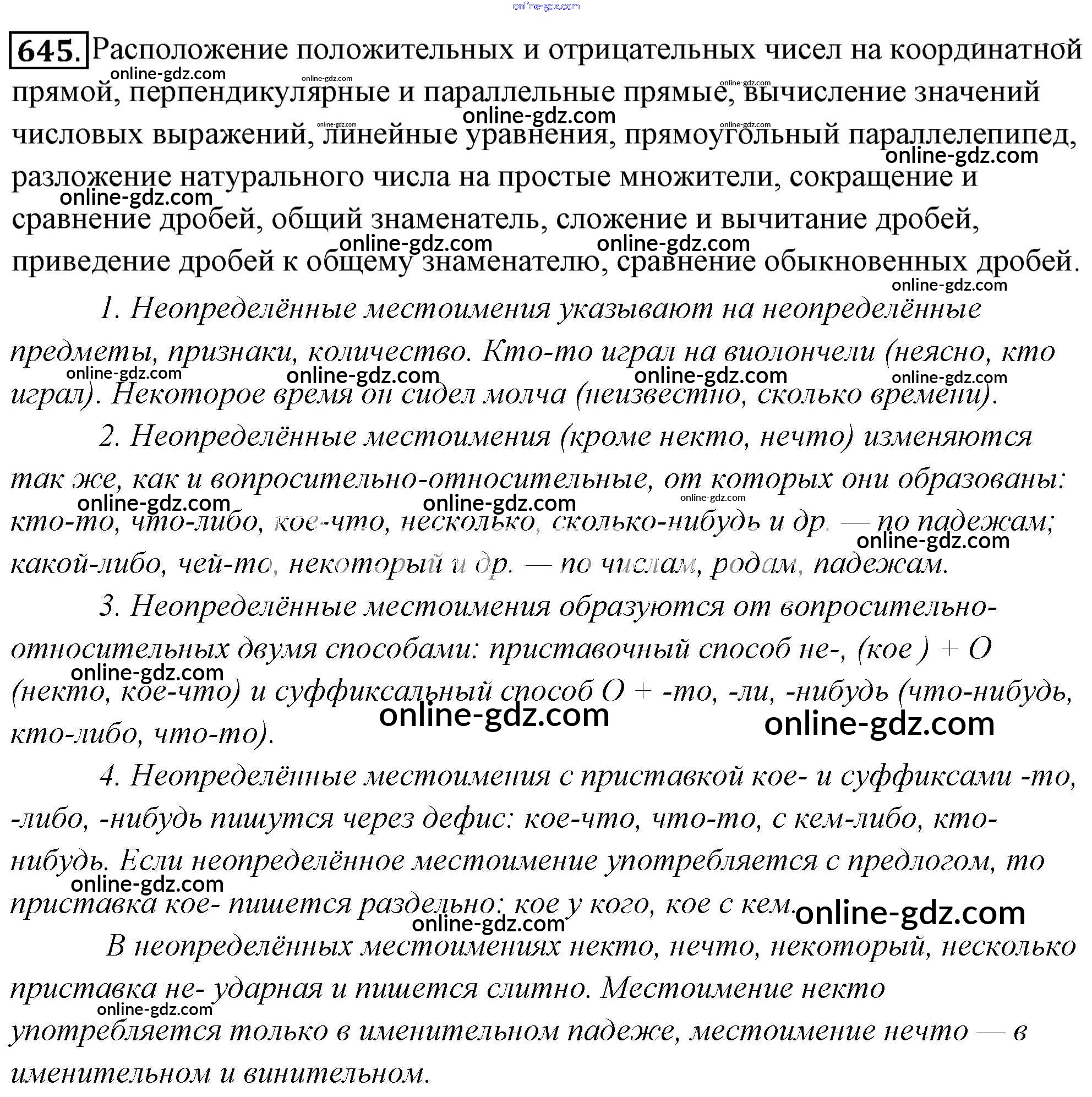 Готовые домашние задания по Русскому языку за 6 класс Учебник Львова, Львов 2013 - Упражнения 645