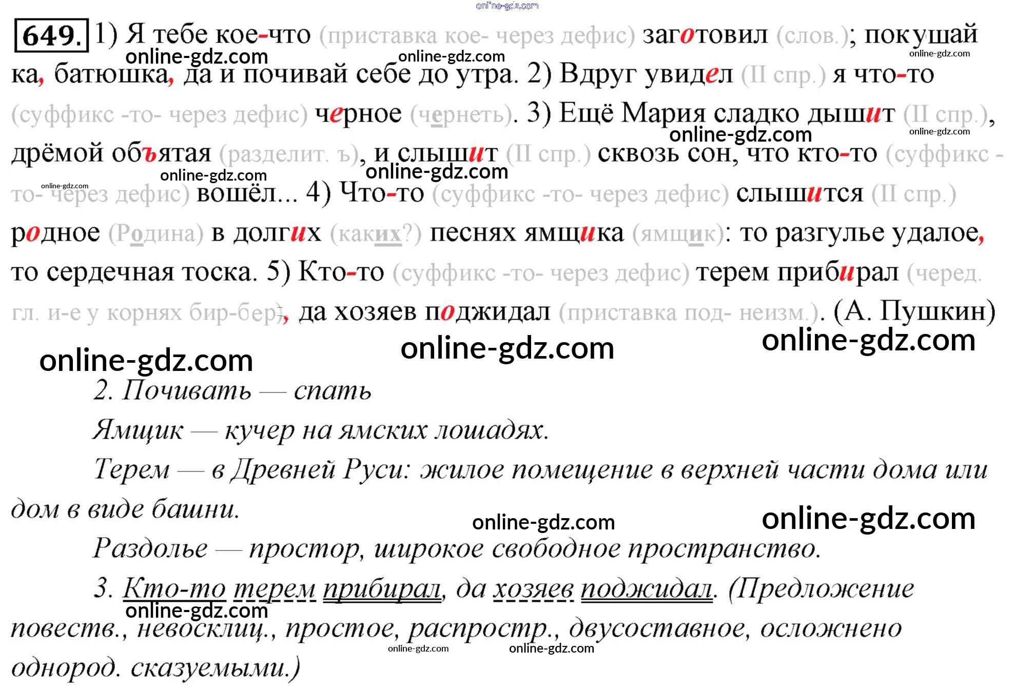 Готовые домашние задания по Русскому языку за 6 класс Учебник Львова, Львов 2013 - Упражнения 649