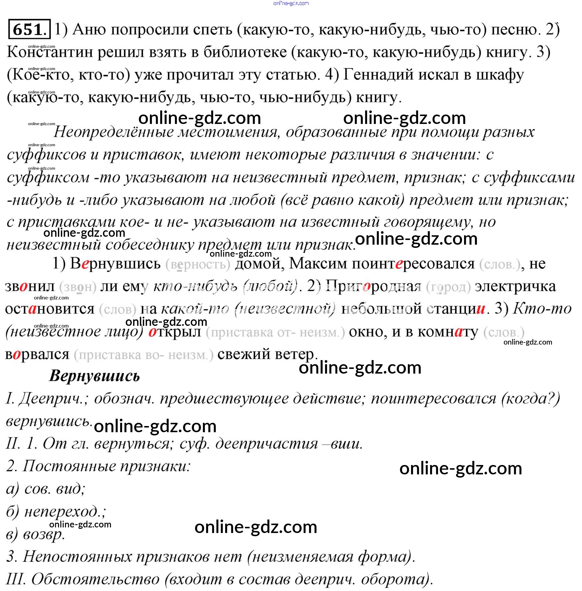 Готовые домашние задания по Русскому языку за 6 класс Учебник Львова, Львов 2013 - Упражнения 651