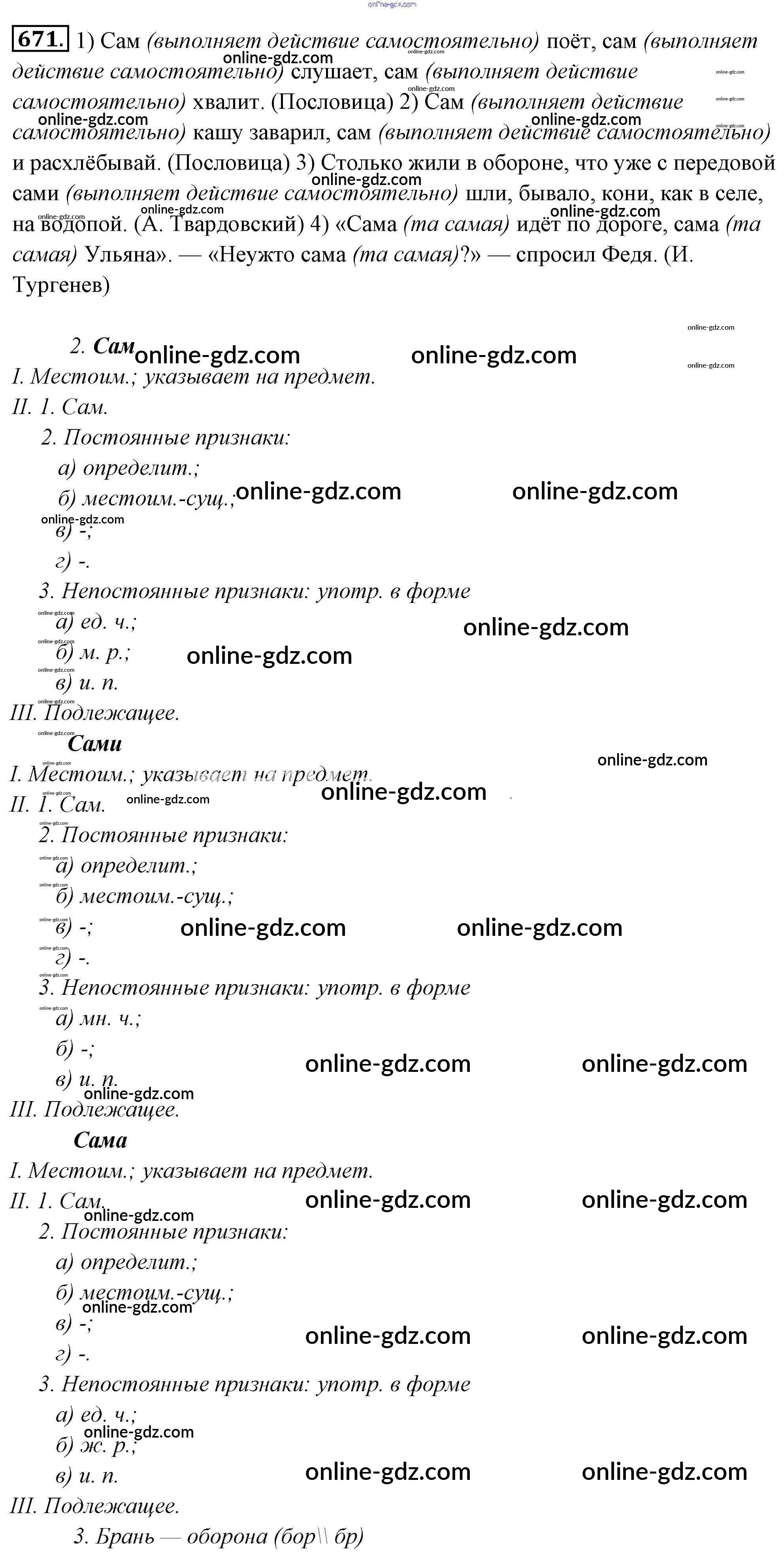 Готовые домашние задания по Русскому языку за 6 класс Учебник Львова, Львов 2013 - Упражнения 671
