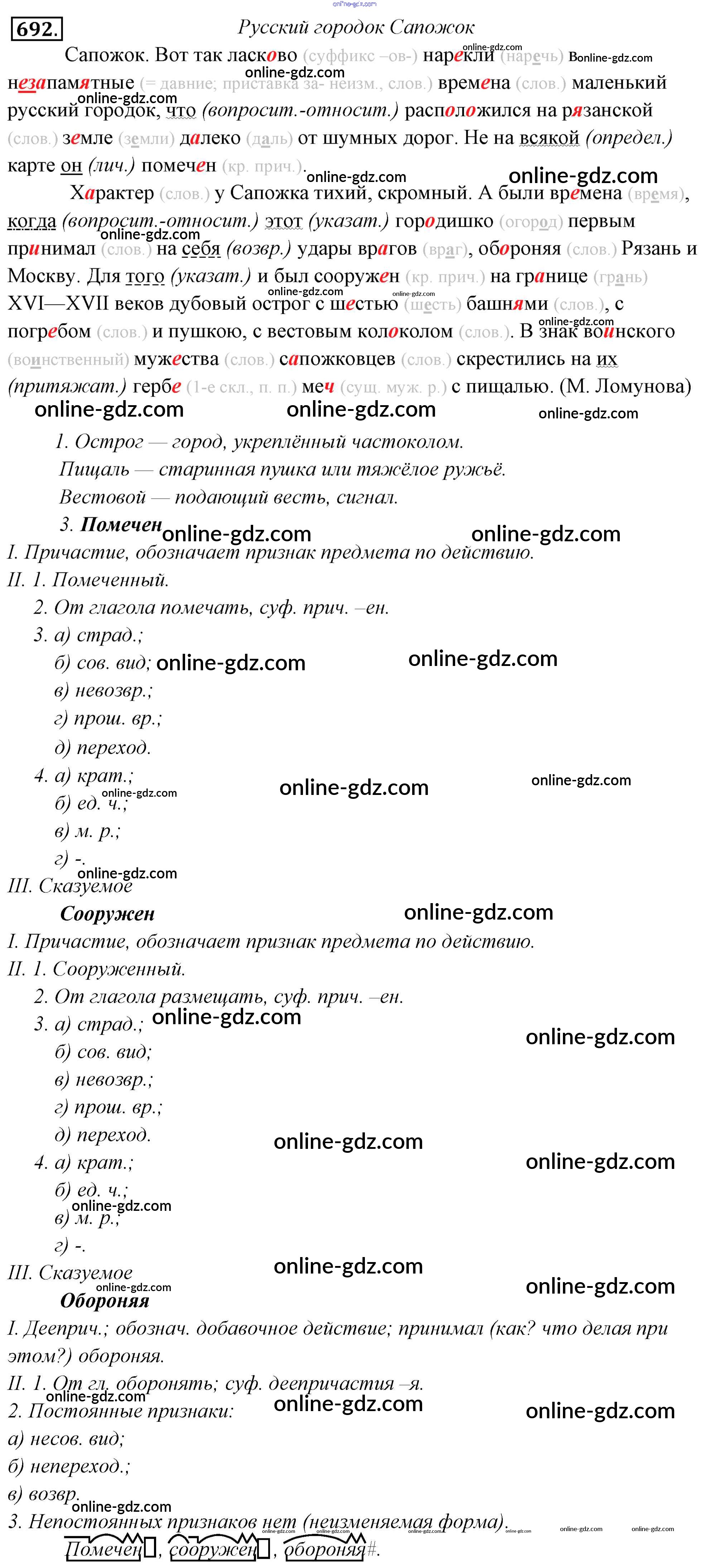 Готовые домашние задания по Русскому языку за 6 класс Учебник Львова, Львов 2013 - Упражнения 692