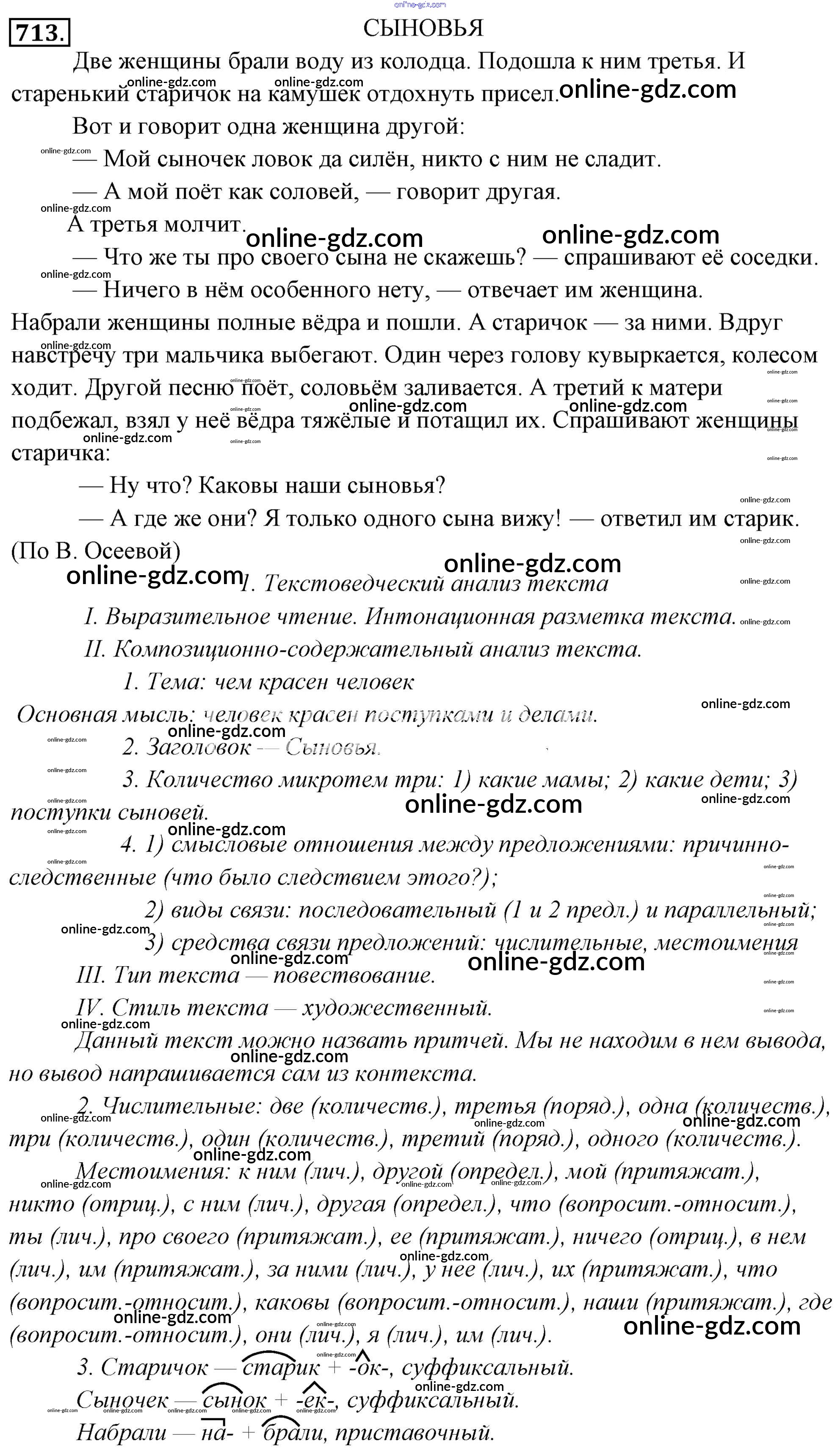 Готовые домашние задания по Русскому языку за 6 класс Учебник Львова, Львов 2013 - Упражнения 713
