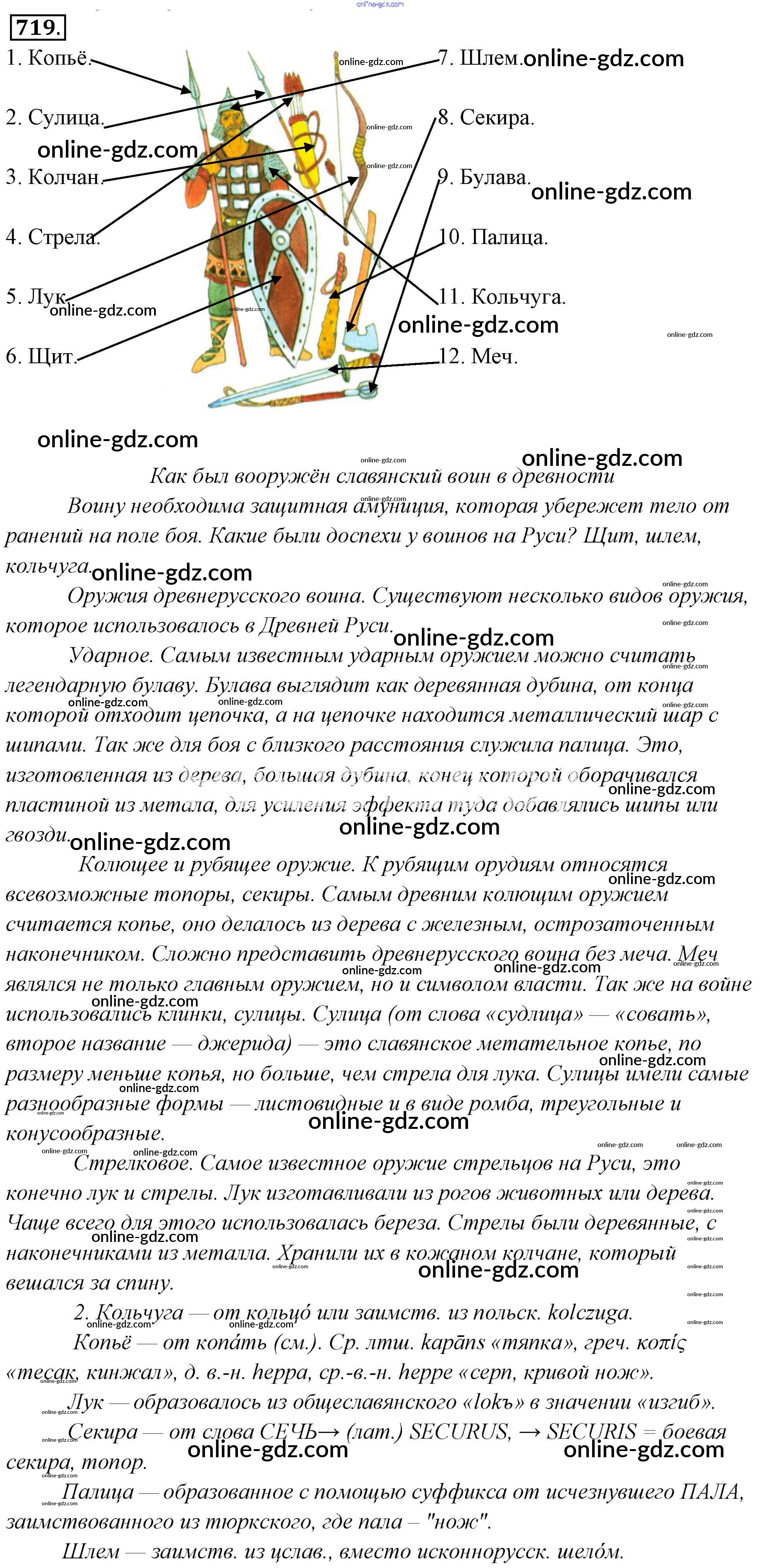 Готовые домашние задания по Русскому языку за 6 класс Учебник Львова, Львов 2013 - Упражнения 719