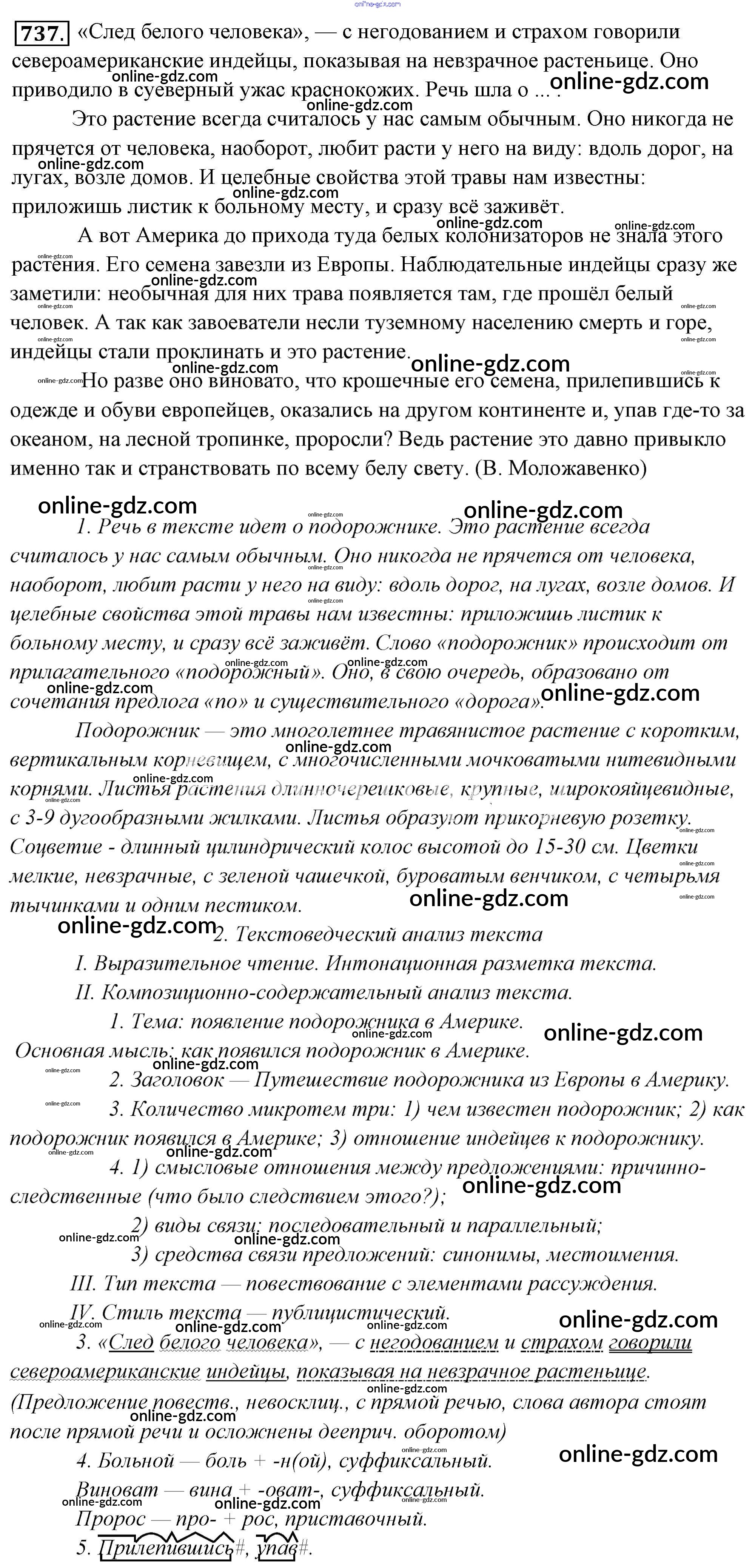 Готовые домашние задания по Русскому языку за 6 класс Учебник Львова, Львов 2013 - Упражнения 737