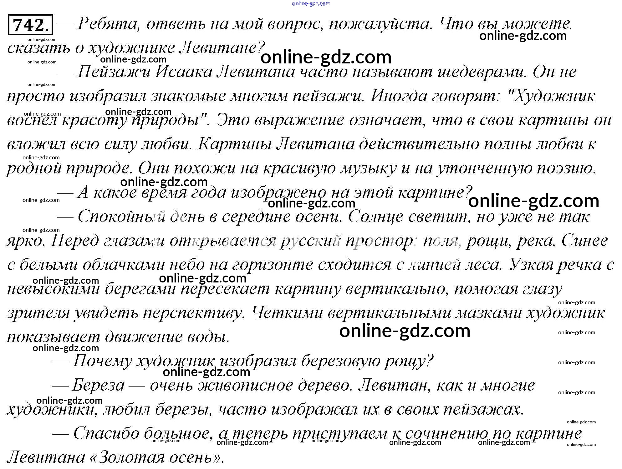 Готовые домашние задания по Русскому языку за 6 класс Учебник Львова, Львов 2013 - Упражнения 742