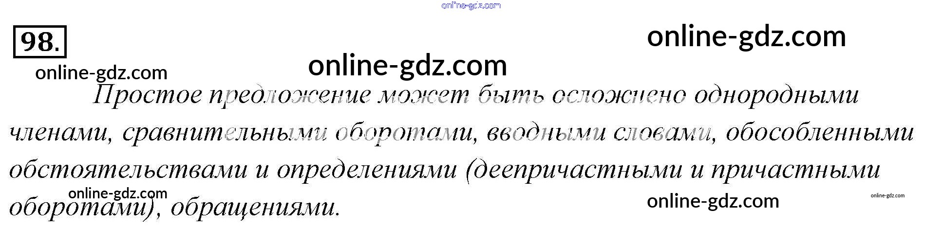 Готовые домашние задания по Русскому языку за 6 класс Учебник Львова, Львов 2013 - Упражнения 98