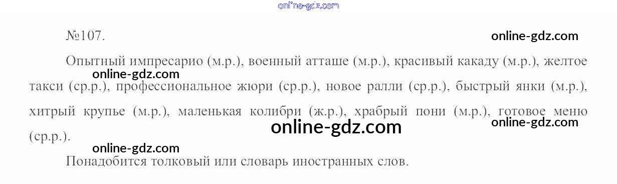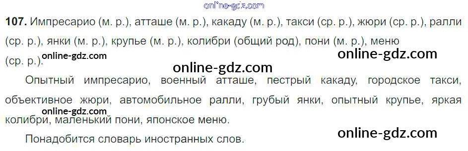 Готовые домашние задания по Русскому языку за 6 класс Учебник Разумовская, Львова Вертикаль 2016 - Упражнения 107