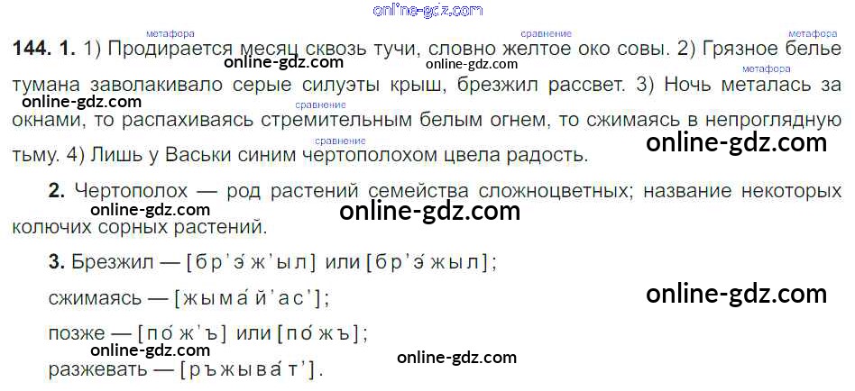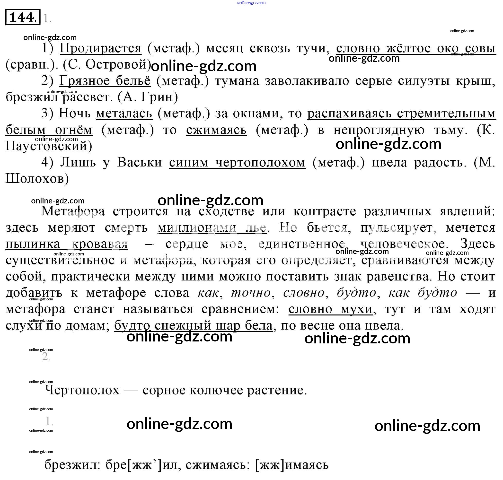 Готовые домашние задания по Русскому языку за 6 класс Учебник Разумовская, Львова Вертикаль 2016 - Упражнения 144