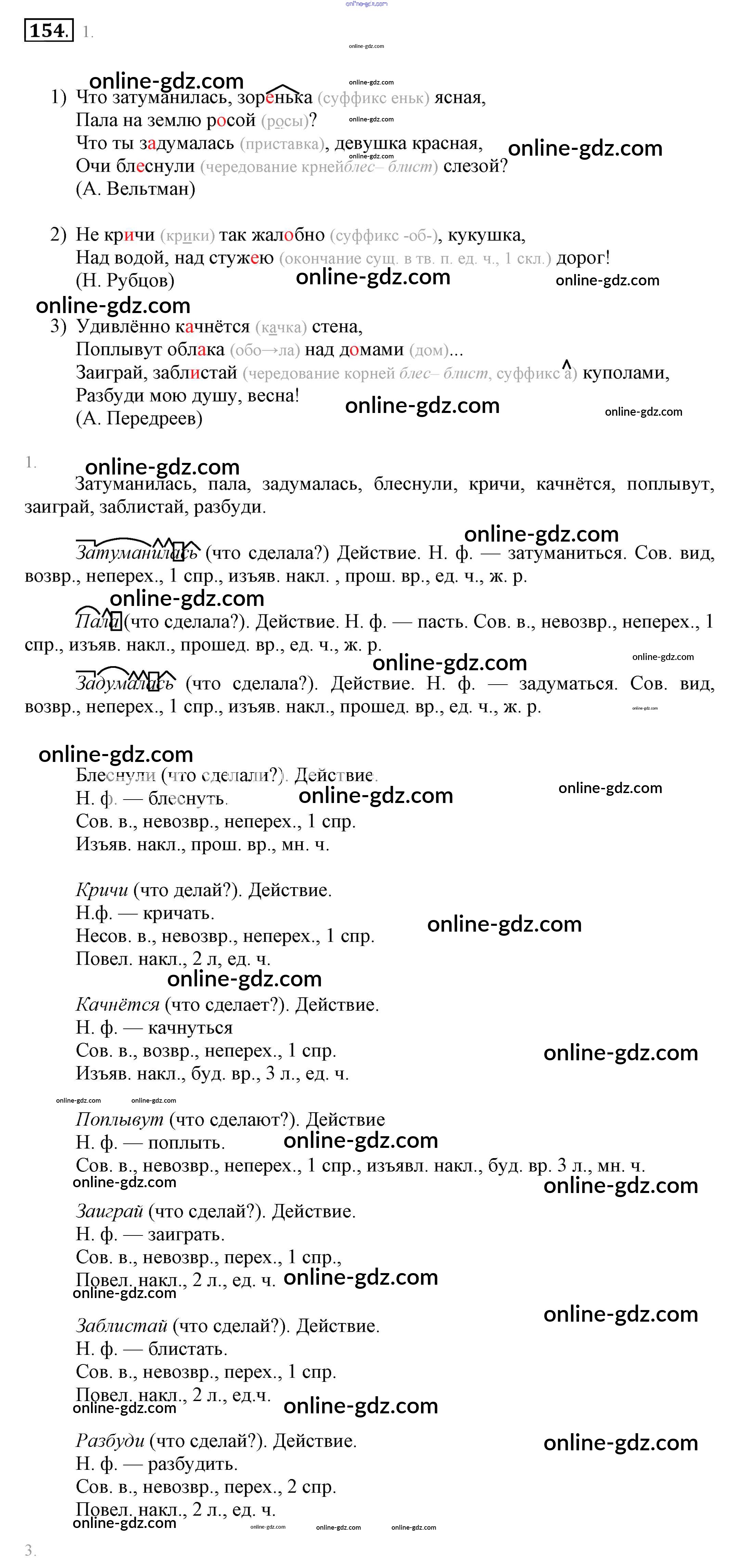 Готовые домашние задания по Русскому языку за 6 класс Учебник Разумовская, Львова Вертикаль 2016 - Упражнения 154