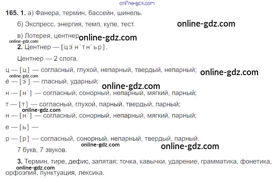 Готовые домашние задания по Русскому языку за 6 класс Учебник Разумовская, Львова Вертикаль 2016 - Упражнения 165