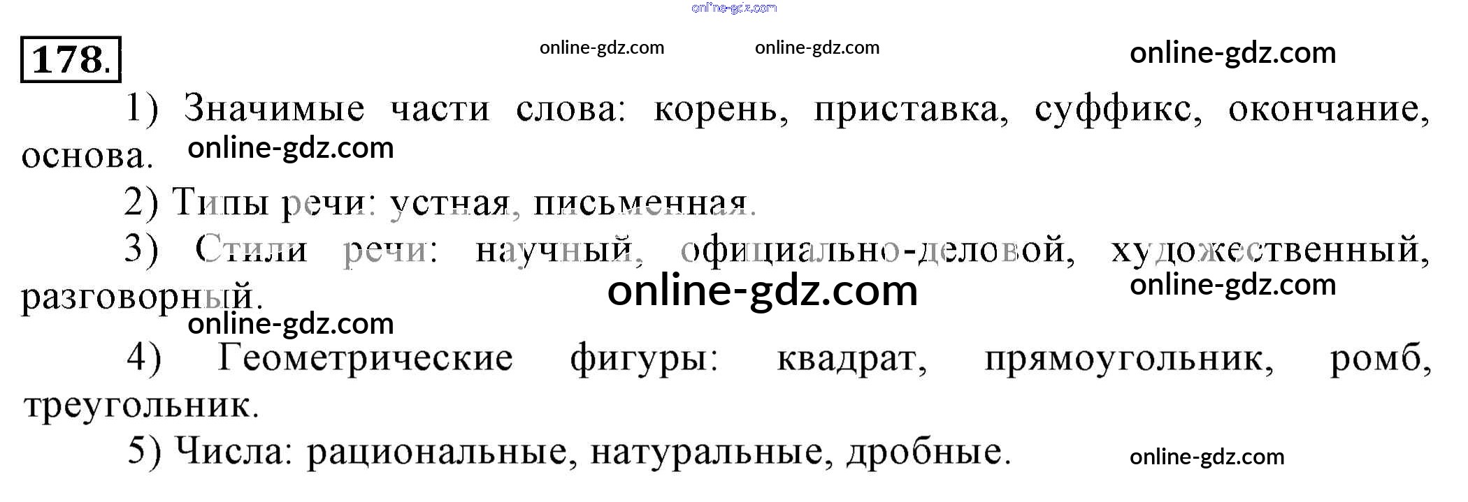 Готовые домашние задания по Русскому языку за 6 класс Учебник Разумовская, Львова Вертикаль 2016 - Упражнения 178