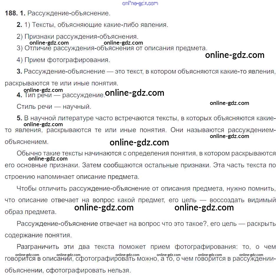 Готовые домашние задания по Русскому языку за 6 класс Учебник Разумовская, Львова Вертикаль 2016 - Упражнения 188