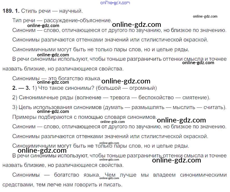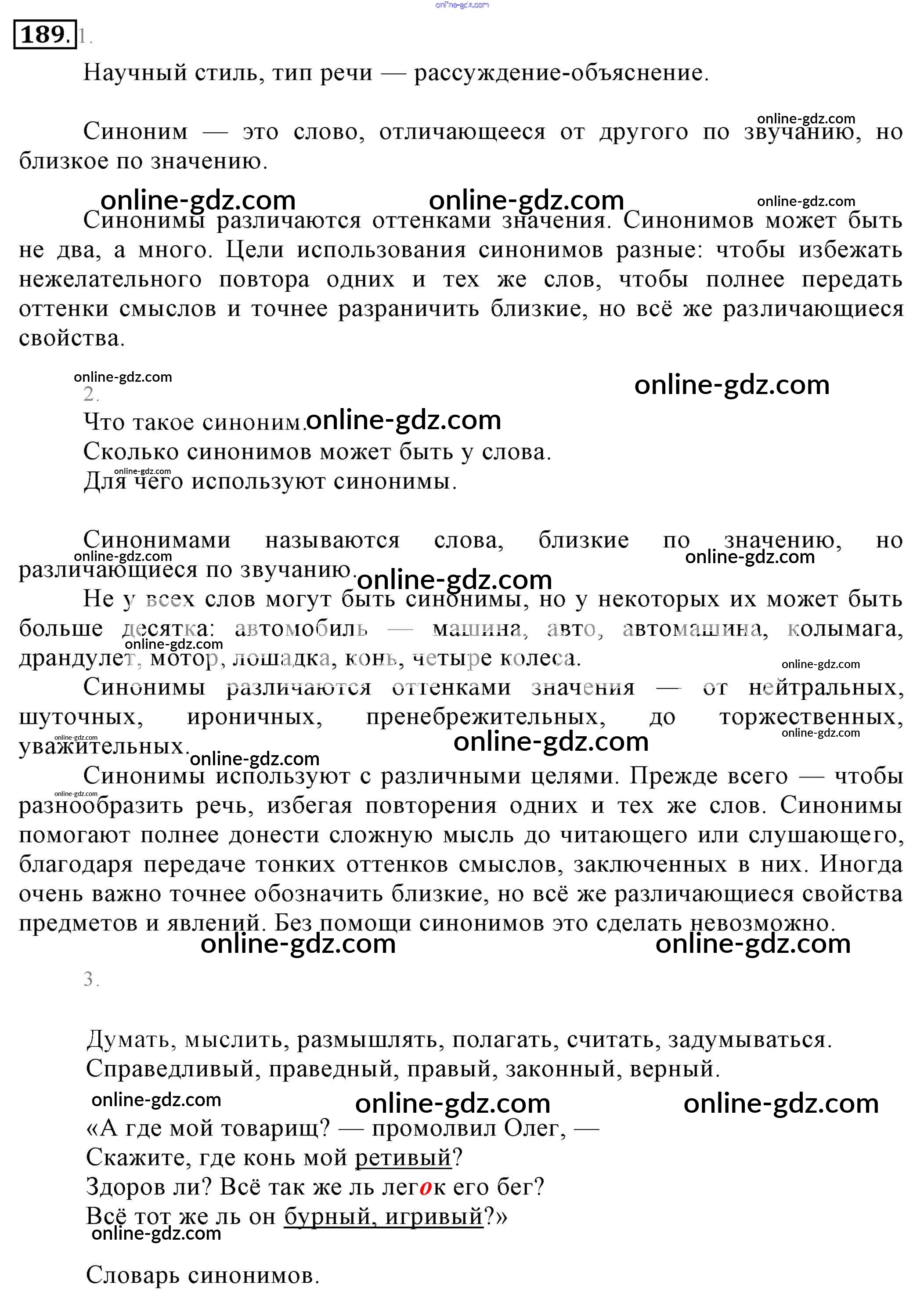 Готовые домашние задания по Русскому языку за 6 класс Учебник Разумовская, Львова Вертикаль 2016 - Упражнения 189
