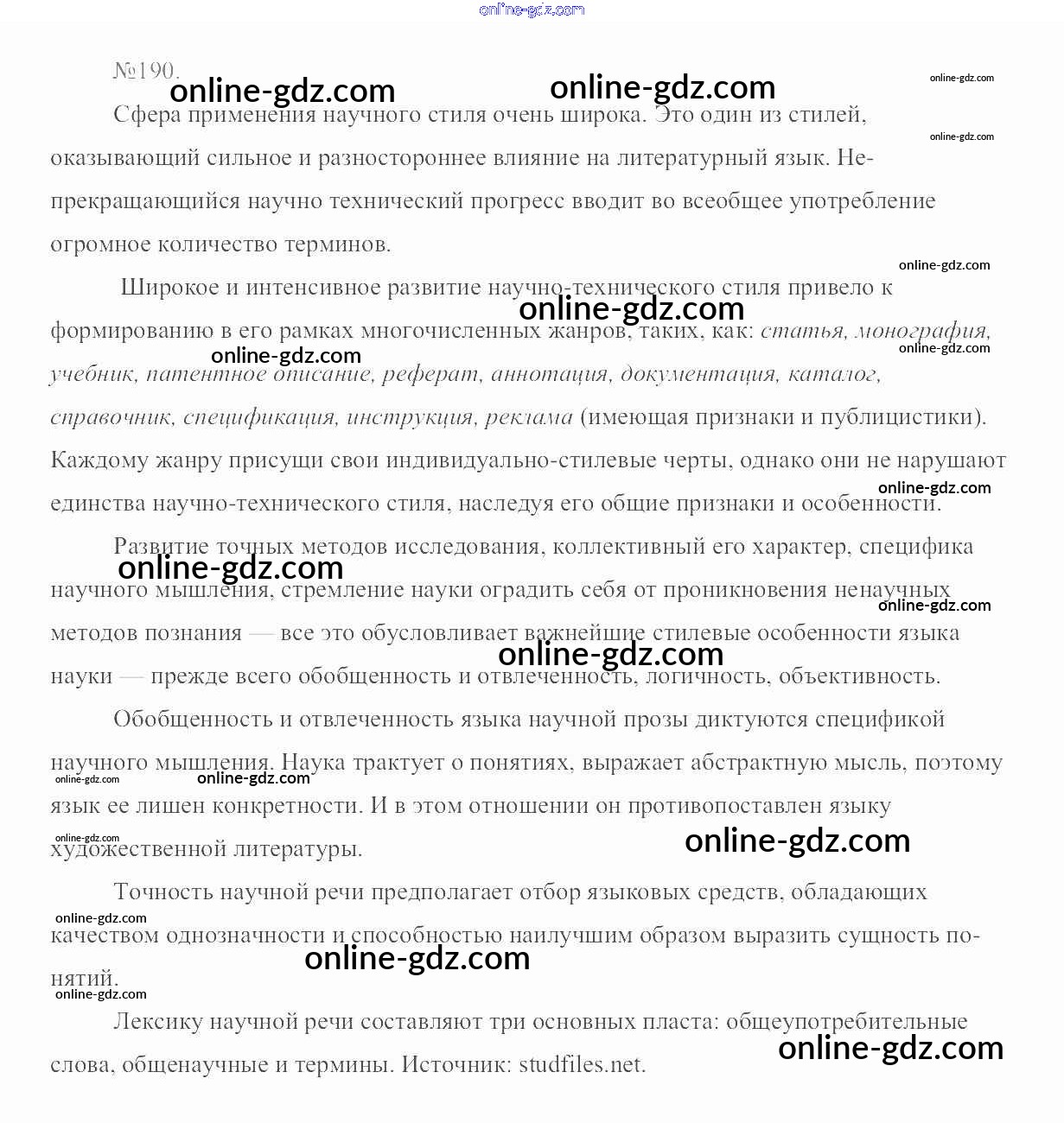 Готовые домашние задания по Русскому языку за 6 класс Учебник Разумовская, Львова Вертикаль 2016 - Упражнения 190