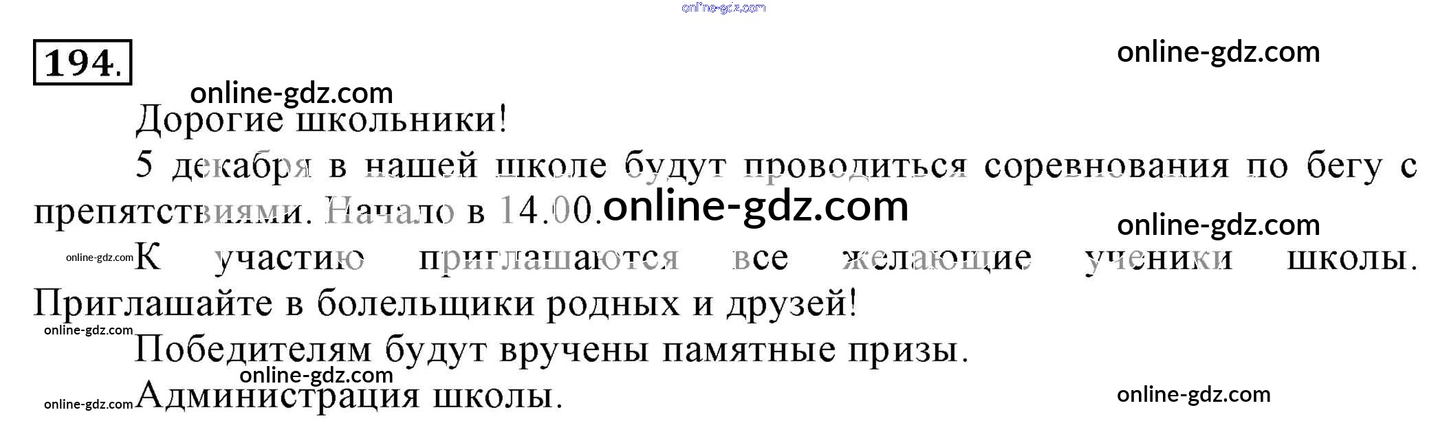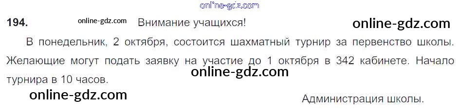 Готовые домашние задания по Русскому языку за 6 класс Учебник Разумовская, Львова Вертикаль 2016 - Упражнения 194