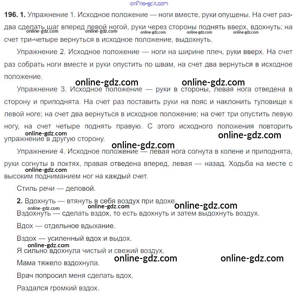 Готовые домашние задания по Русскому языку за 6 класс Учебник Разумовская, Львова Вертикаль 2016 - Упражнения 196