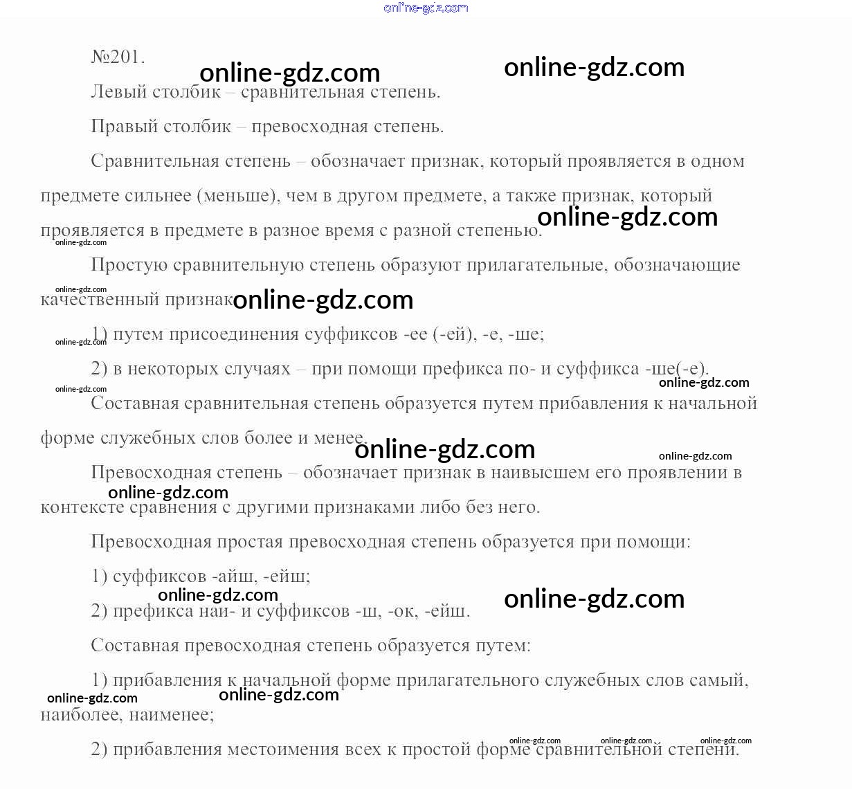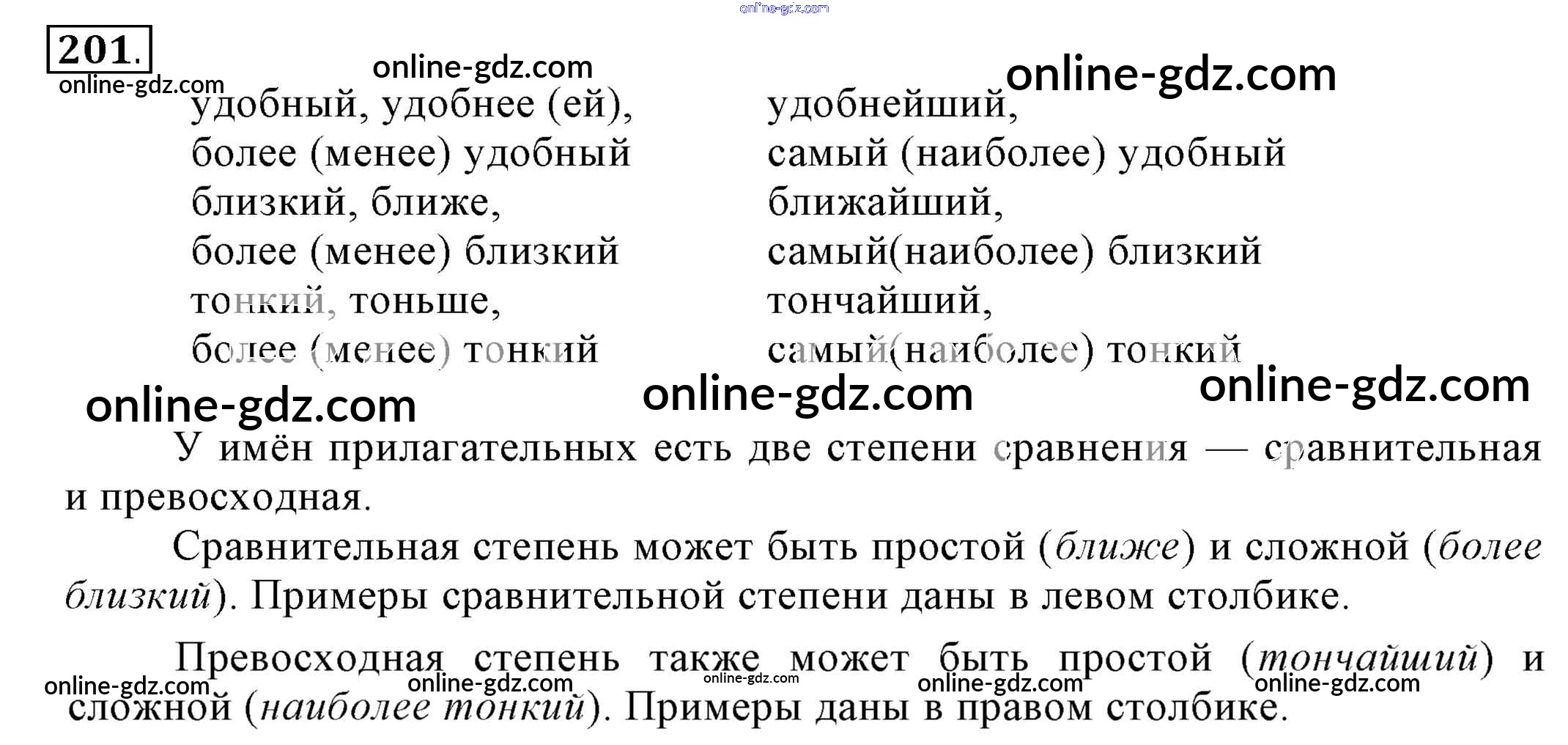 Готовые домашние задания по Русскому языку за 6 класс Учебник Разумовская, Львова Вертикаль 2016 - Упражнения 201