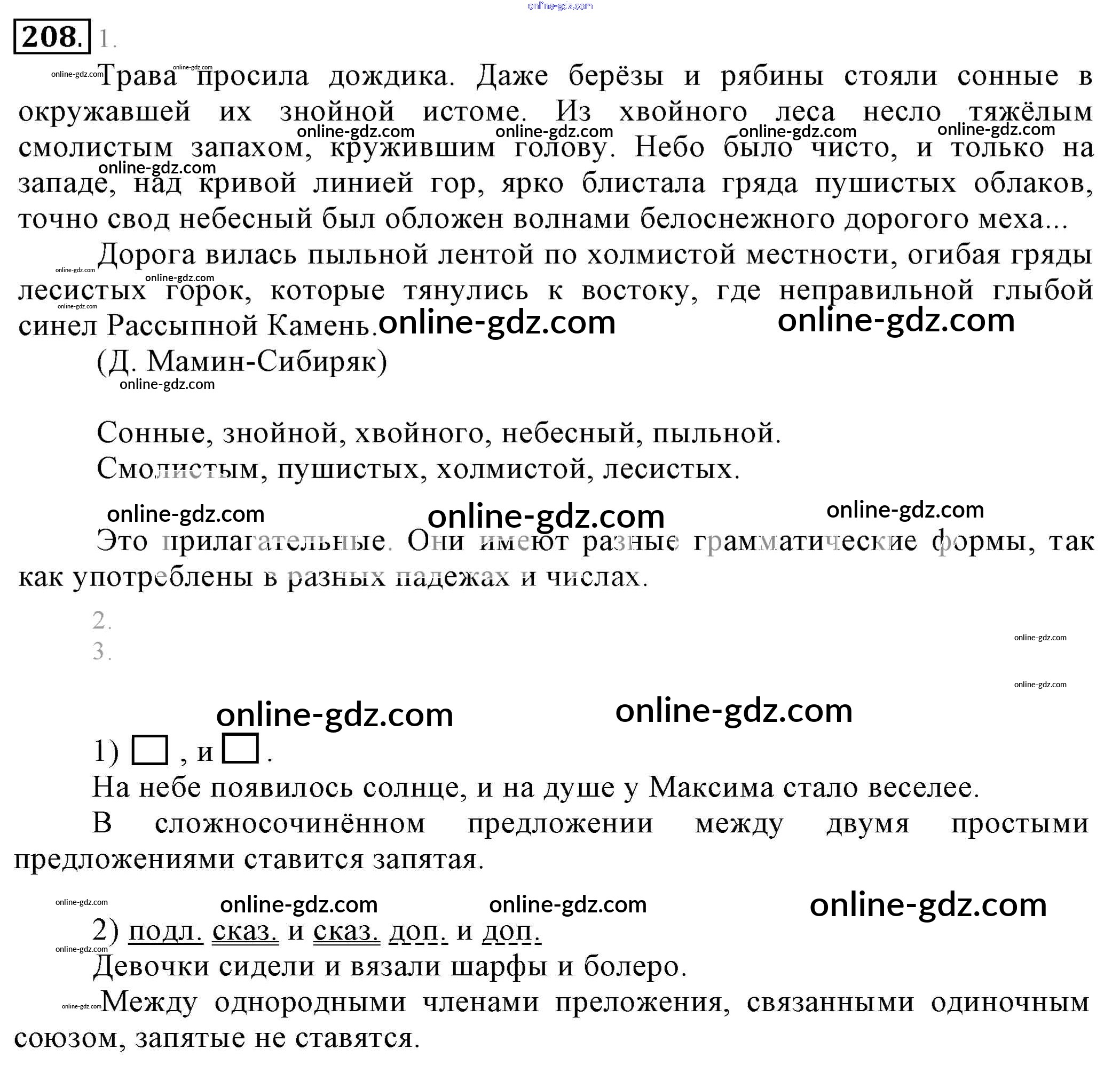 Готовые домашние задания по Русскому языку за 6 класс Учебник Разумовская, Львова Вертикаль 2016 - Упражнения 208