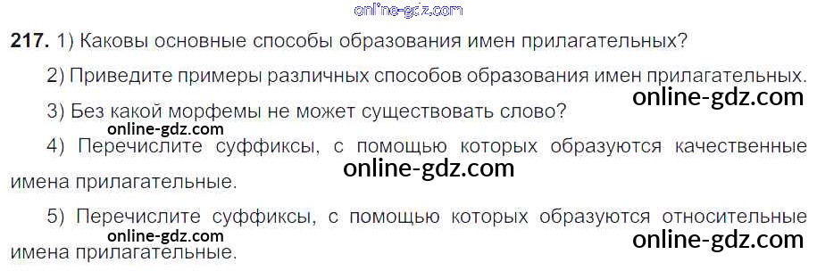 Готовые домашние задания по Русскому языку за 6 класс Учебник Разумовская, Львова Вертикаль 2016 - Упражнения 217