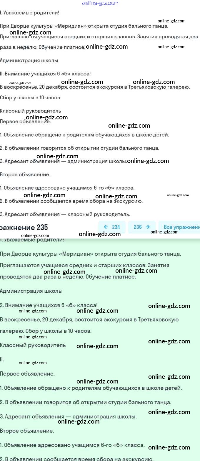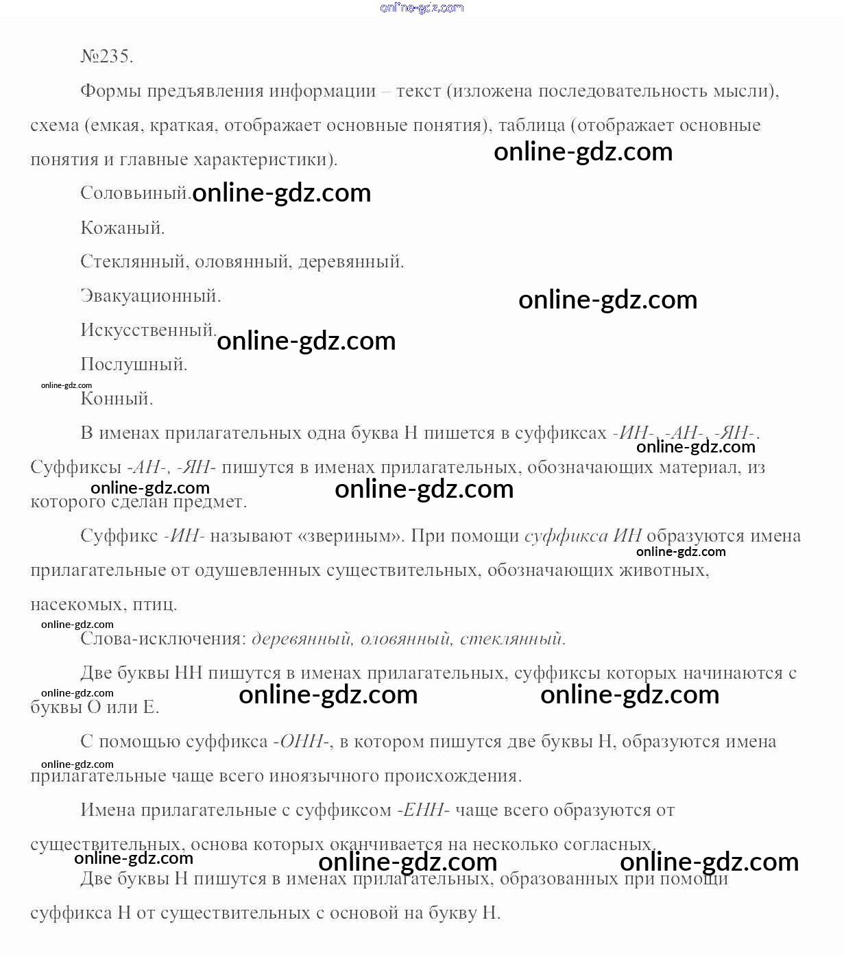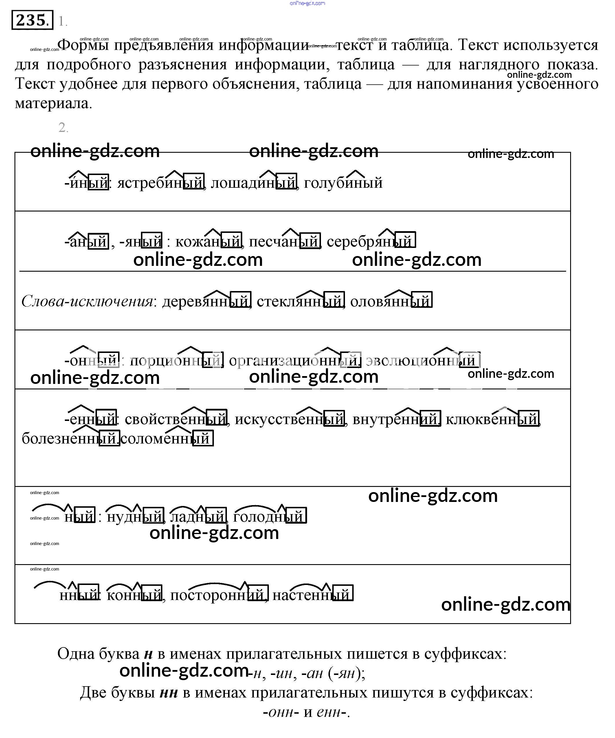 Готовые домашние задания по Русскому языку за 6 класс Учебник Разумовская, Львова Вертикаль 2016 - Упражнения 235