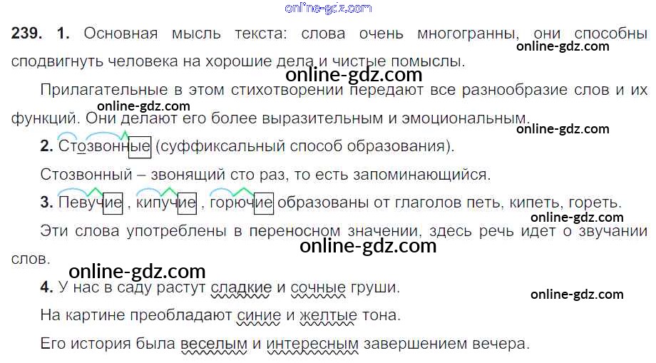 Готовые домашние задания по Русскому языку за 6 класс Учебник Разумовская, Львова Вертикаль 2016 - Упражнения 239