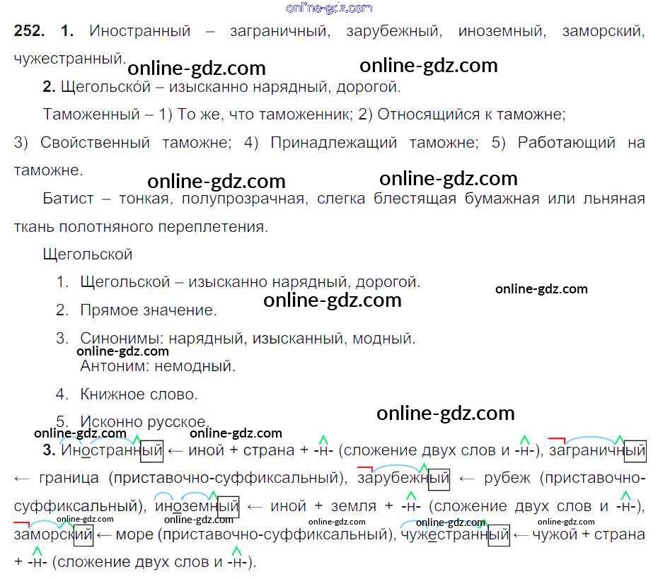 Готовые домашние задания по Русскому языку за 6 класс Учебник Разумовская, Львова Вертикаль 2016 - Упражнения 252