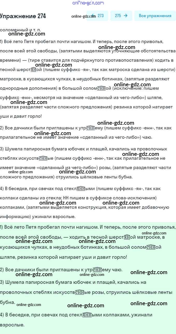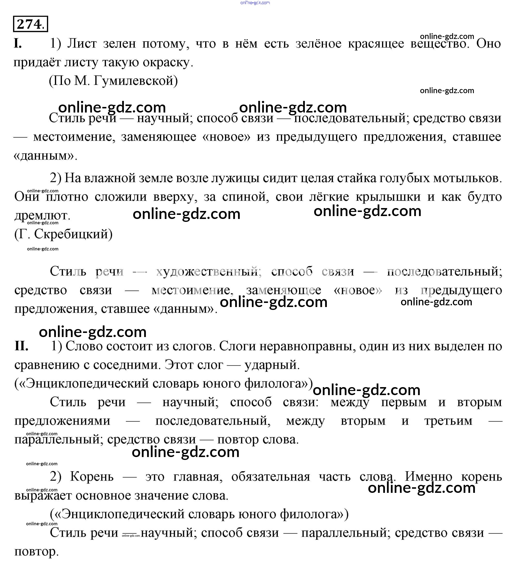Готовые домашние задания по Русскому языку за 6 класс Учебник Разумовская, Львова Вертикаль 2016 - Упражнения 274