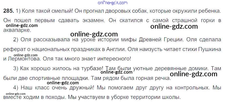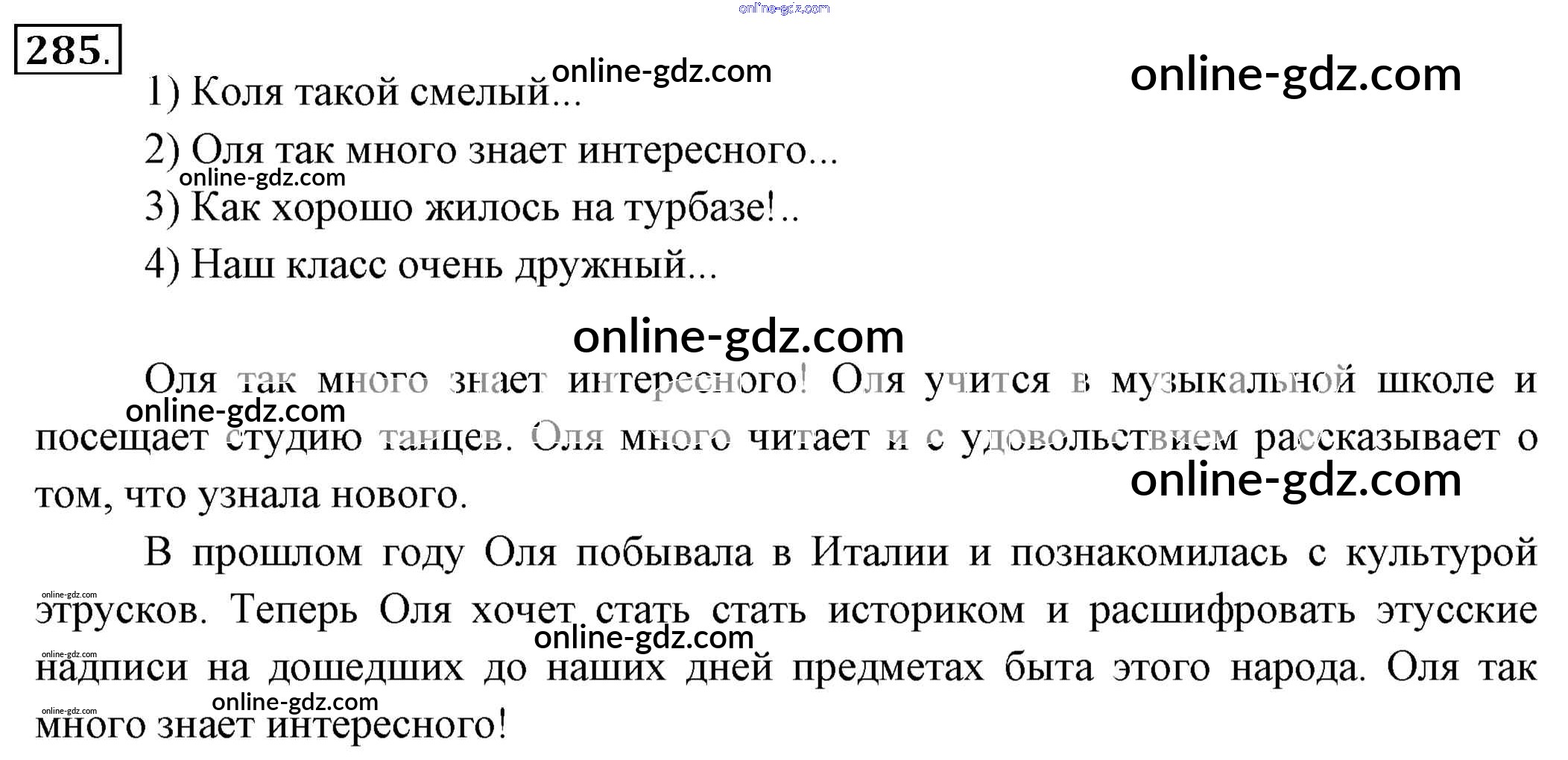 Готовые домашние задания по Русскому языку за 6 класс Учебник Разумовская, Львова Вертикаль 2016 - Упражнения 285