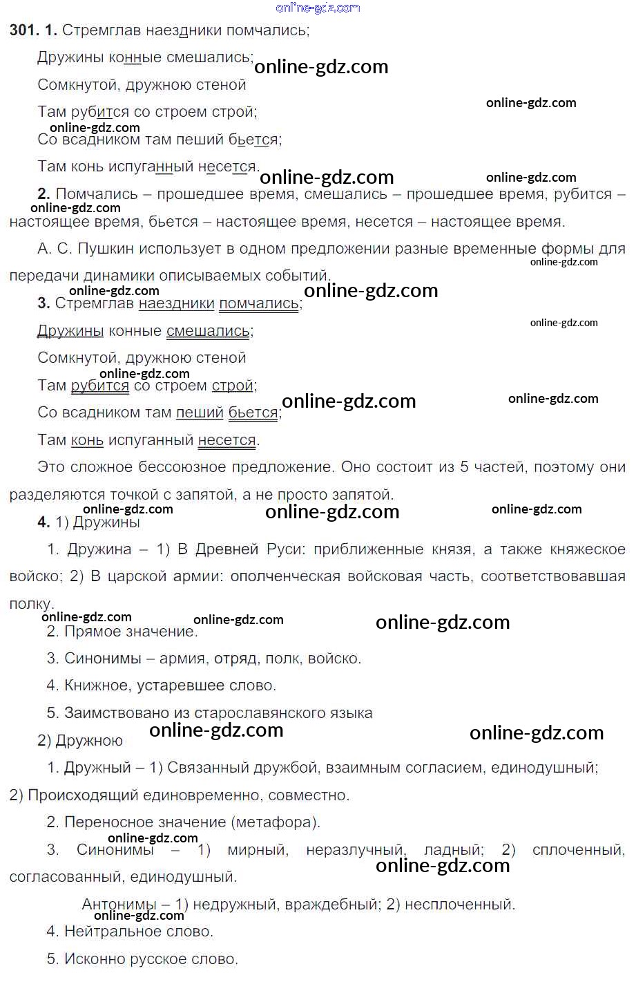 Готовые домашние задания по Русскому языку за 6 класс Учебник Разумовская, Львова Вертикаль 2016 - Упражнения 301