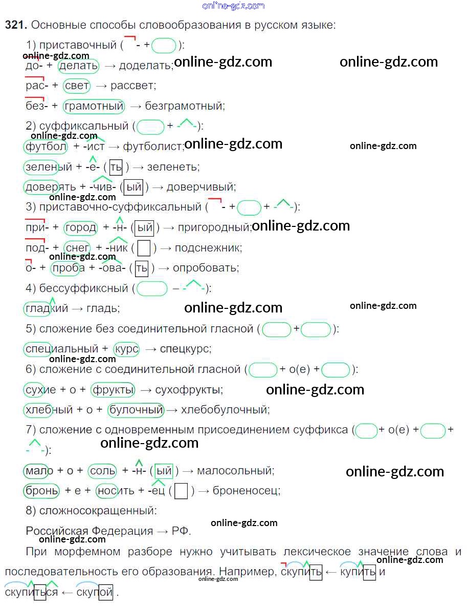 Готовые домашние задания по Русскому языку за 6 класс Учебник Разумовская, Львова Вертикаль 2016 - Упражнения 321
