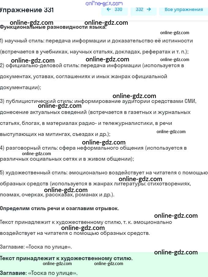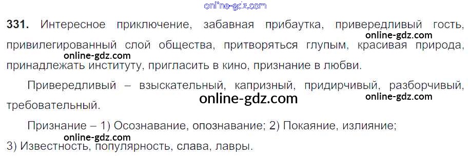 Готовые домашние задания по Русскому языку за 6 класс Учебник Разумовская, Львова Вертикаль 2016 - Упражнения 331