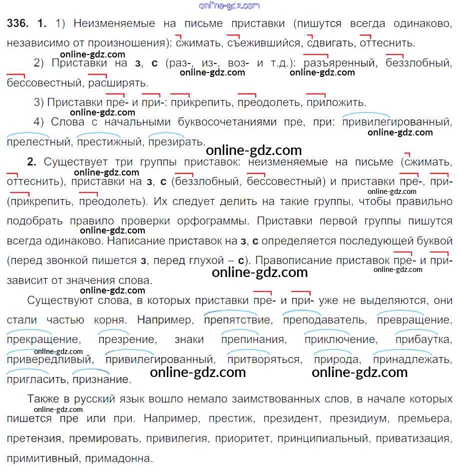 Готовые домашние задания по Русскому языку за 6 класс Учебник Разумовская, Львова Вертикаль 2016 - Упражнения 336