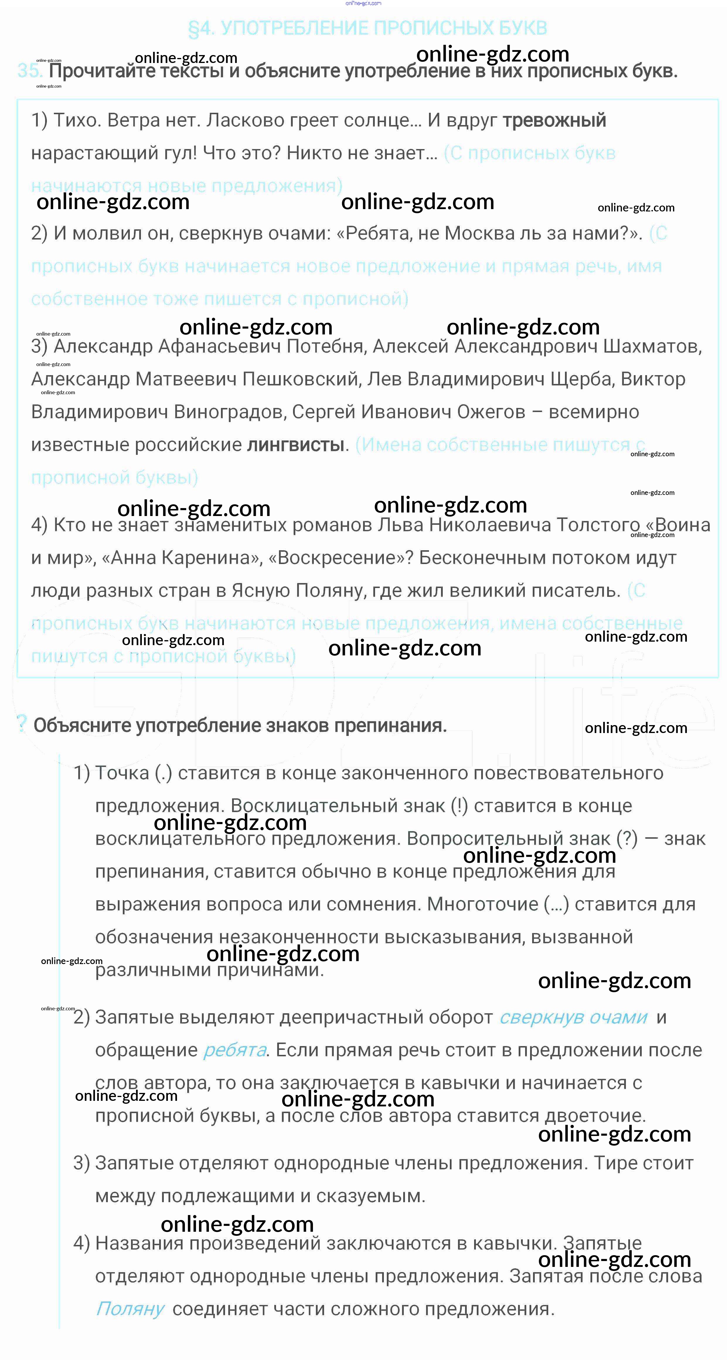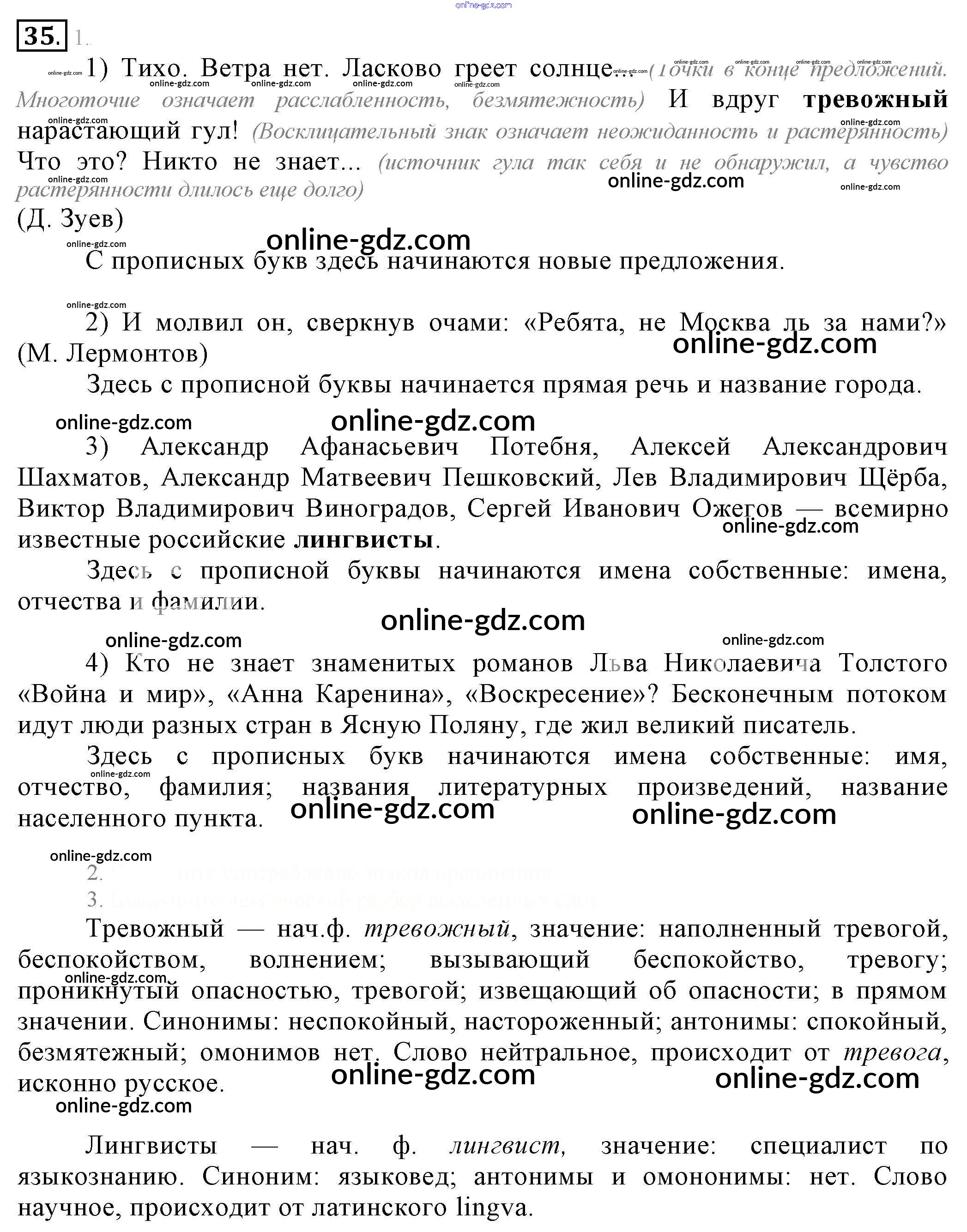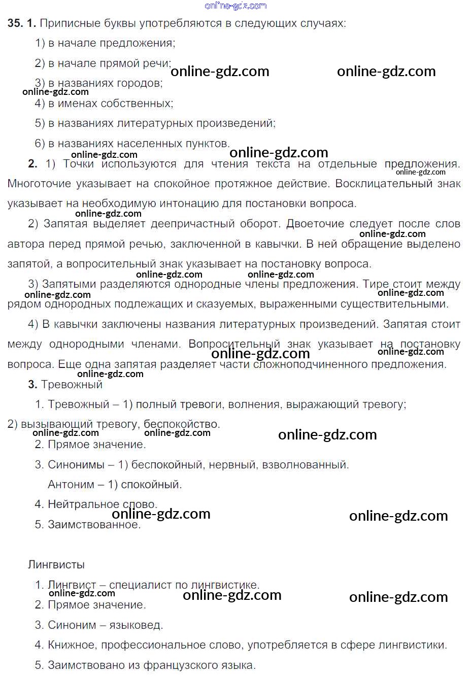Готовые домашние задания по Русскому языку за 6 класс Учебник Разумовская, Львова Вертикаль 2016 - Упражнения 35