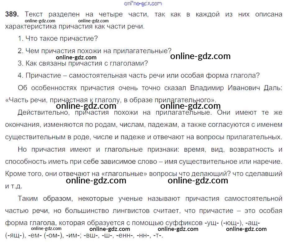 Готовые домашние задания по Русскому языку за 6 класс Учебник Разумовская, Львова Вертикаль 2016 - Упражнения 389