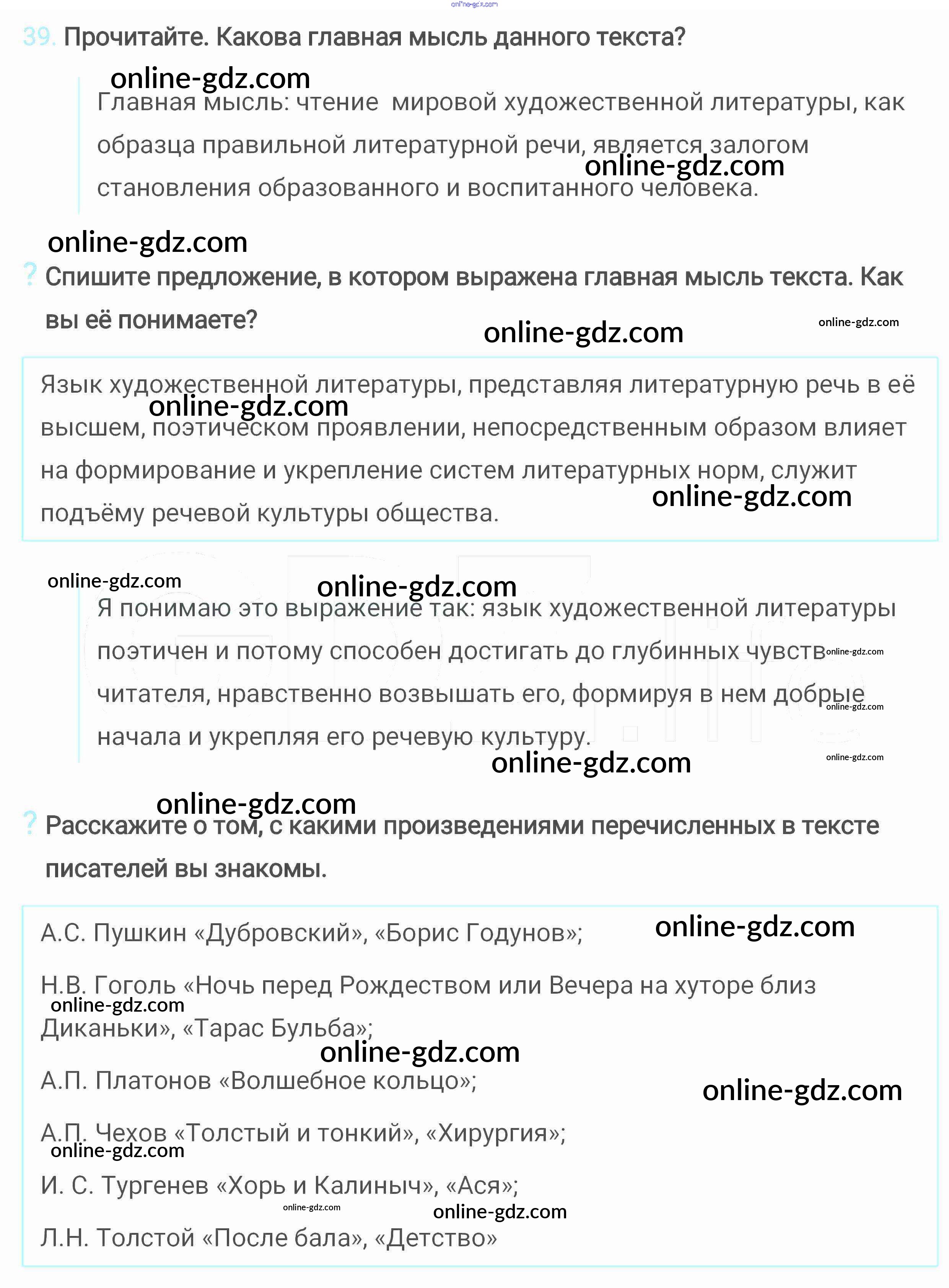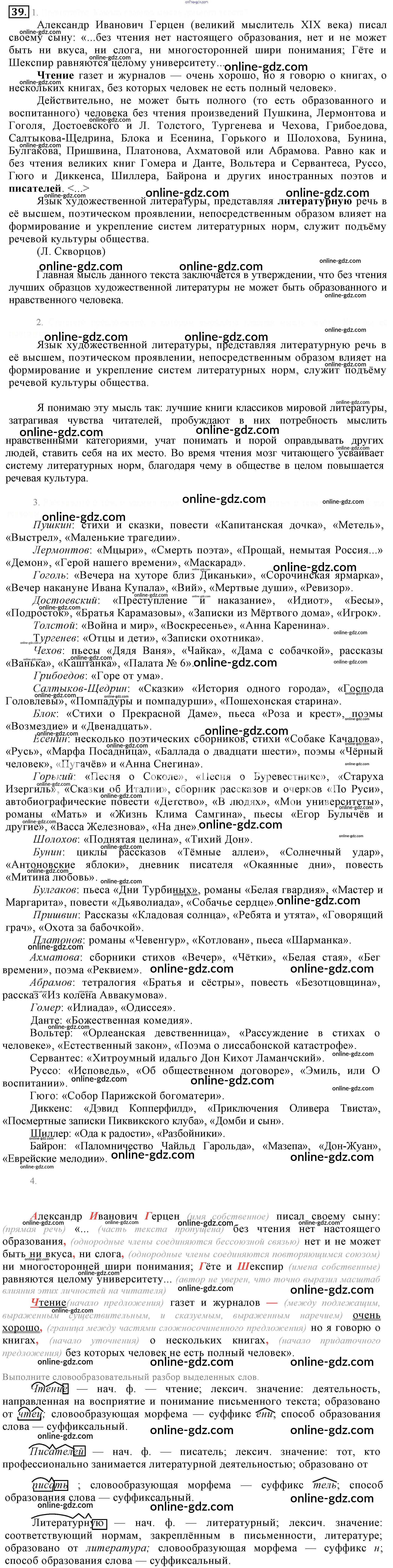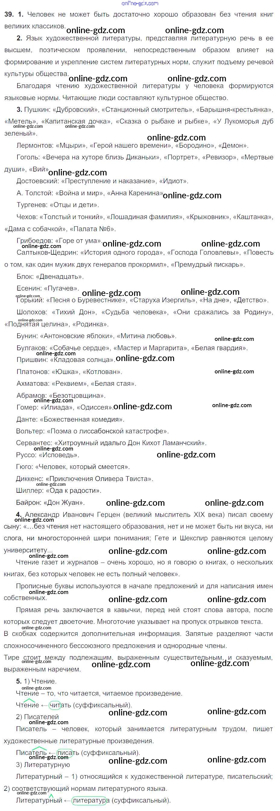 Готовые домашние задания по Русскому языку за 6 класс Учебник Разумовская, Львова Вертикаль 2016 - Упражнения 39