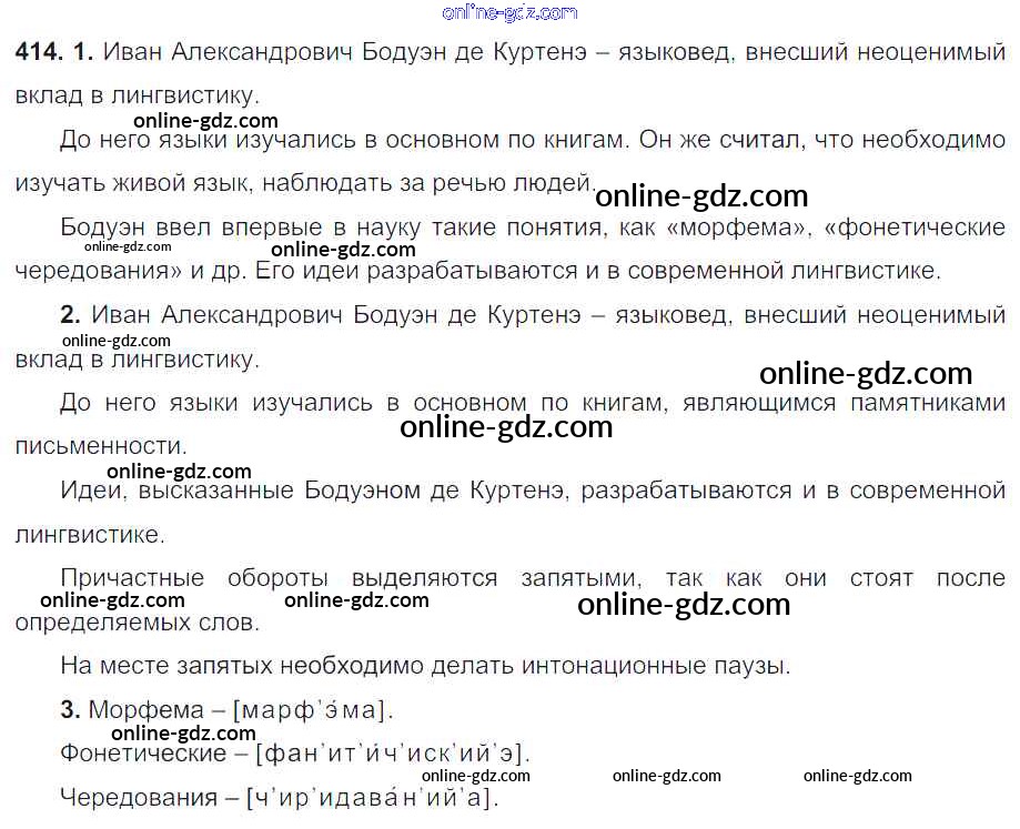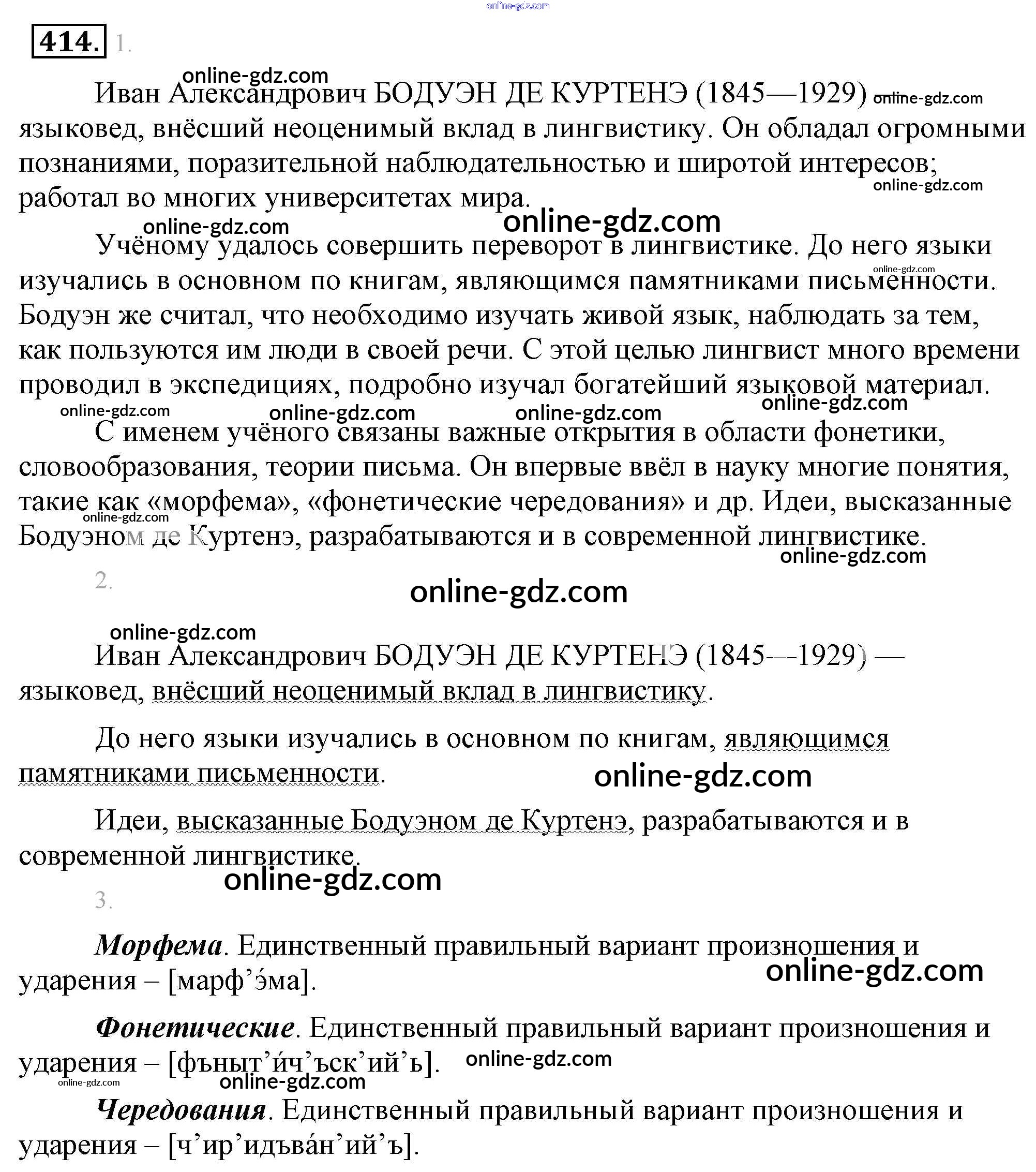 Готовые домашние задания по Русскому языку за 6 класс Учебник Разумовская, Львова Вертикаль 2016 - Упражнения 414