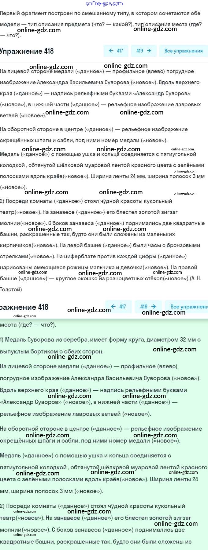 Готовые домашние задания по Русскому языку за 6 класс Учебник Разумовская, Львова Вертикаль 2016 - Упражнения 418