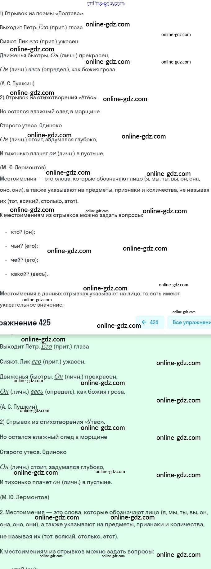 Готовые домашние задания по Русскому языку за 6 класс Учебник Разумовская, Львова Вертикаль 2016 - Упражнения 425