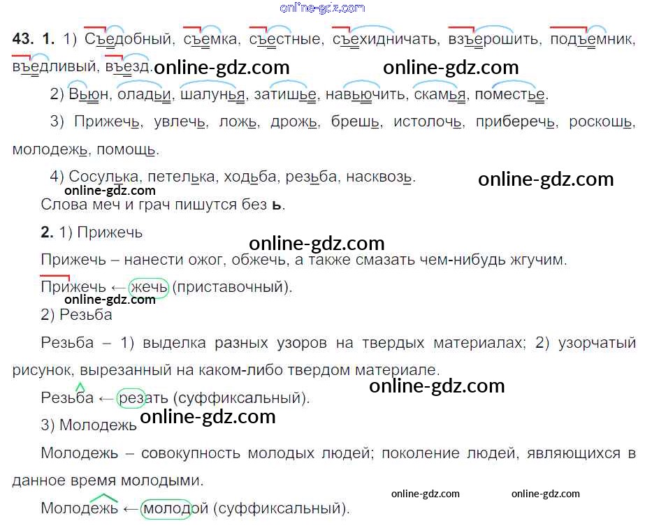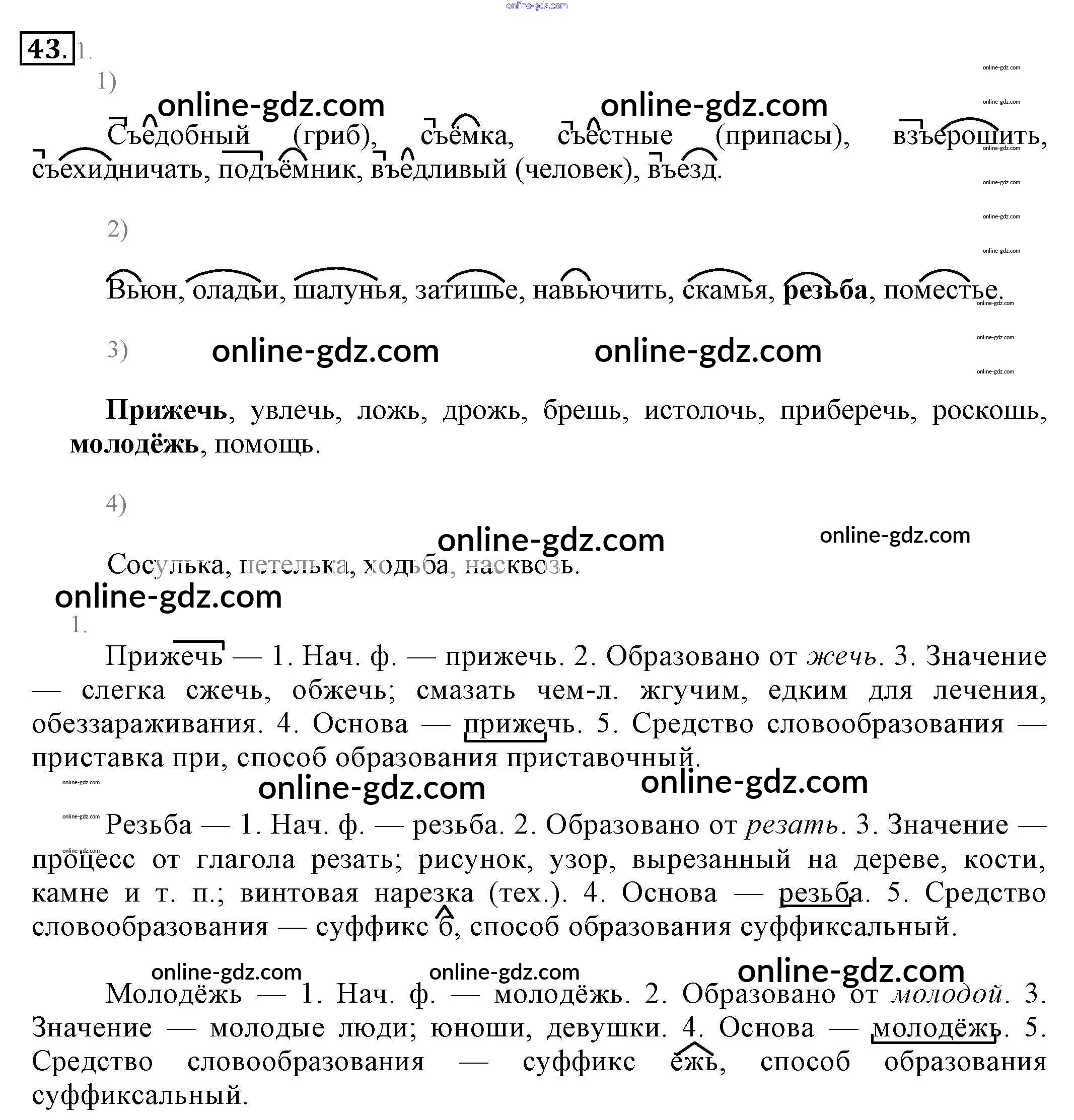 Готовые домашние задания по Русскому языку за 6 класс Учебник Разумовская, Львова Вертикаль 2016 - Упражнения 43