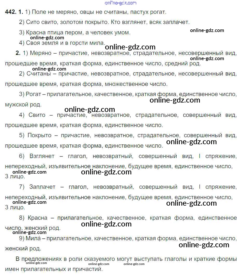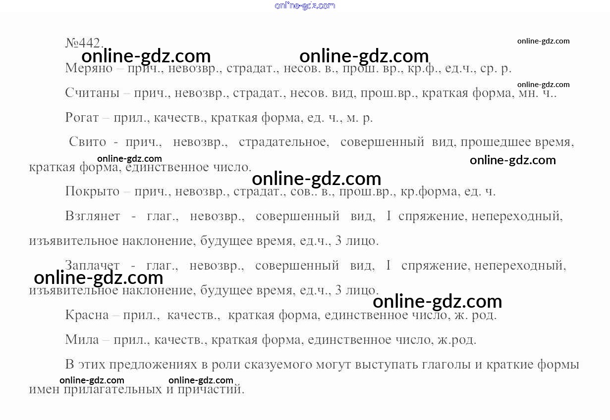 Готовые домашние задания по Русскому языку за 6 класс Учебник Разумовская, Львова Вертикаль 2016 - Упражнения 442