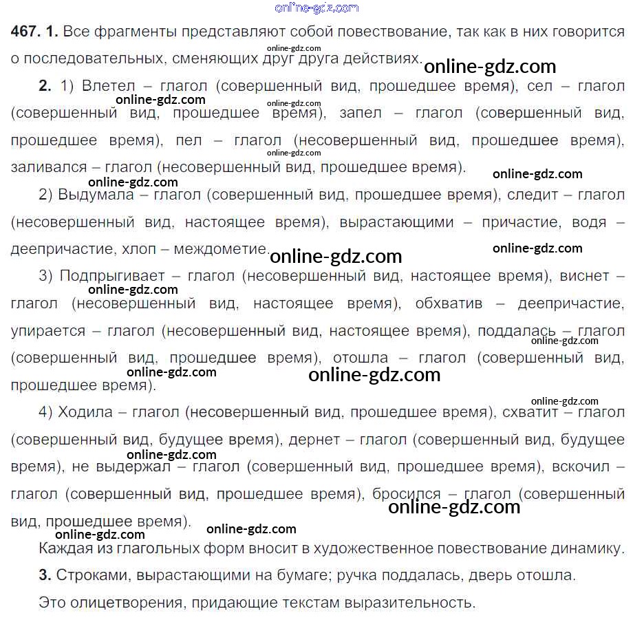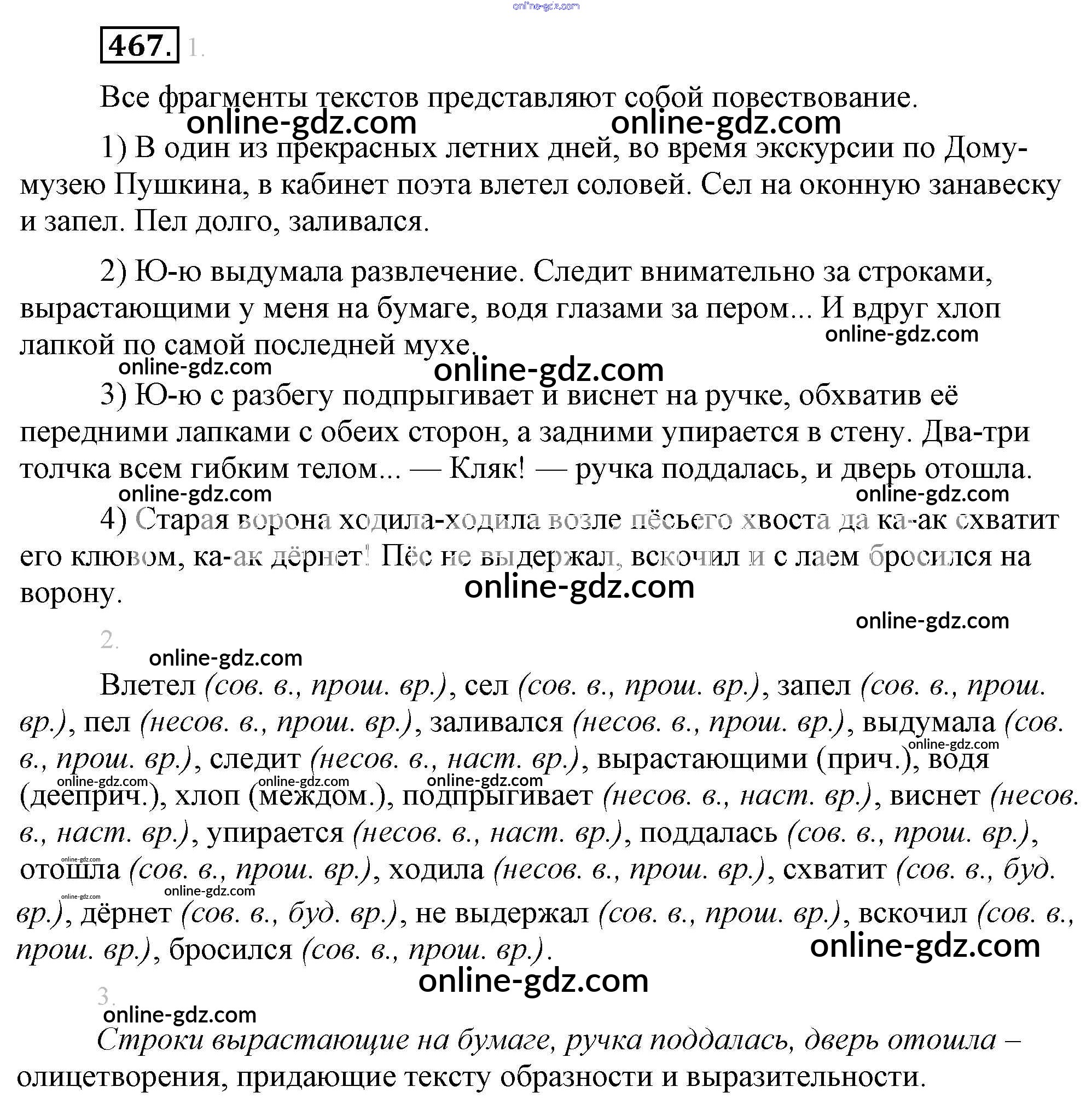 Готовые домашние задания по Русскому языку за 6 класс Учебник Разумовская, Львова Вертикаль 2016 - Упражнения 467