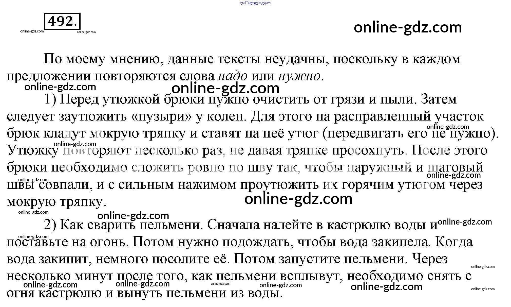 Готовые домашние задания по Русскому языку за 6 класс Учебник Разумовская, Львова Вертикаль 2016 - Упражнения 492
