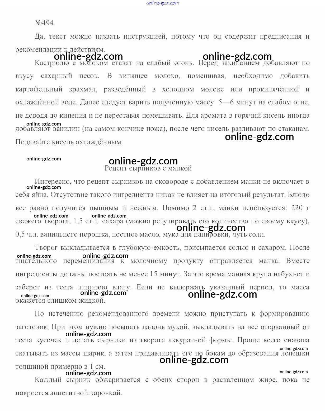 Готовые домашние задания по Русскому языку за 6 класс Учебник Разумовская, Львова Вертикаль 2016 - Упражнения 494