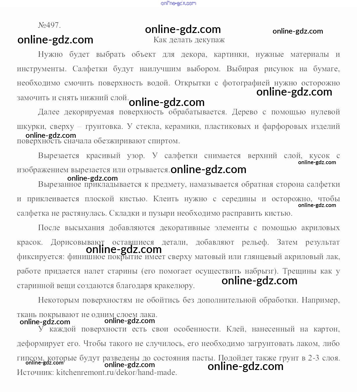 Готовые домашние задания по Русскому языку за 6 класс Учебник Разумовская, Львова Вертикаль 2016 - Упражнения 497