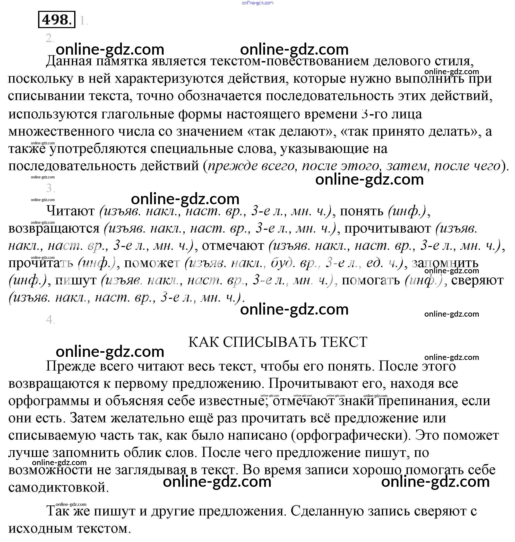 Готовые домашние задания по Русскому языку за 6 класс Учебник Разумовская, Львова Вертикаль 2016 - Упражнения 498